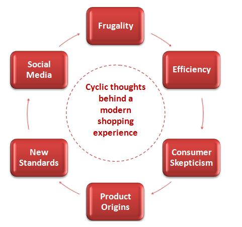 So perhaps it’s not so much the consumer behavior itself, but the source and shopping experience which initiates the change, which needs to be examined. Here is a vicious circle of a handful of elements that are changing a consumer’s shopping and product selection experience. This is not an all encompassing list, but still gives a few tips and interesting learnings for entrepreneurs and businesses, from the perspective of both a consumer and a producer, to put it bluntly.