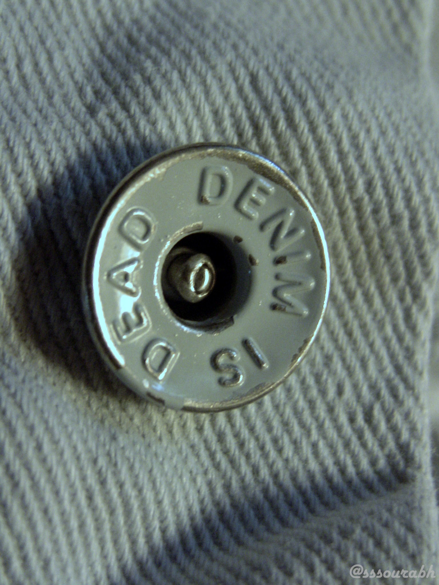 Recalling the juxtaposed phrase of “Denim is Dead” and “Long Live Denim“, tactfully placed in zones of undoing (button) and support (rivet), respectively, I realized how clever Topman is in engraving these onto their jeans. In retrospect, this is a sattire of a proclamation using the same two phrases in synchrony, replacing ‘Denim’ with ‘The King’: “The King is Dead! Long Live the King!”. Naturally, the Kings in this reference refer to the former deceased King, and the successive heir, respectively; the phrase itself is used after the selection of a new monarch. Topman, my favorite brand of London origins, could not have nailed the reality and the irony of distressed denim more aptly. In some eras, in some regions, denim may seem dead, but will actually just be reinventing itself, perhaps going through a patch of distress. Its reign shall never die out; denim will indeed live forever. It may just change its face from time to time, owing to various levels of distress.
