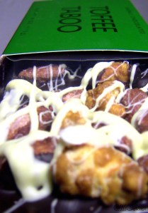With contemporary packaging devoid of dripping chocolate and organic claims that seemed to be a popular vibe this season, there was something innately glamorous about the metallic embossed box with the naughty words Toffee Taboo, courtesy of event producer Bob Sendall’s chocolate line. Psychologically, all things forbidden gain an alluring pedestal on one’s wishlist. In this case, temptation arrived in the form of solid barks of chocolate drizzled with white chocolate and embellished with glistening toffee wrapped nuts. Packing a powerful punch, crunch and oxymoronic dance for the taste buds, this one was a winner.