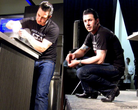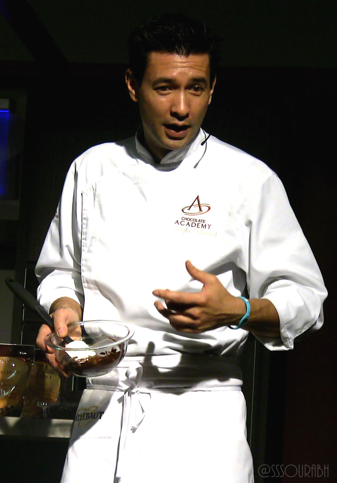 I was lucky to sit smack on the stage for this one, very close to the Top Chef Judge’s container of liquid nitrogen. His demonstration on creating a four star dessert at home left the crowds amazed, especially with the cool and calm way in which he went about the seemingly tough preparation. A busy concoction of solidified gelatin sheets, dark chocolate mousse, liquid nitrogen frozen ice cream with chocolate strands, and much more, was served amidst glamorous vapors on a frozen plate. Offbeat and witty, it was a fun show, with the dish providing a welcome break from chocolatiers that were otherwise focusing on the heat of melting chocolate!