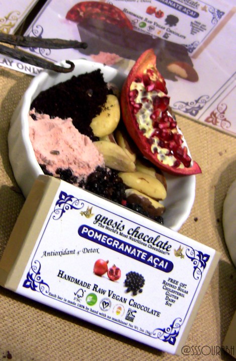 Gnosis can be described as a chocolate line having the rawness and appeal that is equivalent to the Lush of the cosmetics world. Touted as the world’s most nutritious chocolate, and with artwork that did not overkill with swoops of chocolate and overused melting ripples, Gnosis instead displayed ingredients in their earthy state, and concealed chocolate in brick-like bar wrappers with matter-of-factly art in poignant colors. It was one of the most effective grassroots approaches I have seen for packaging and display, because of which I did not mind the plethora of ‘environment-friendly’, ‘machine-free’, ‘hand-made’, ‘vegan’ and related claims and symbols. Upon tasting the varieties, it was amazing how something so nutritiously competent could taste so enriching! It was then that I appreciated the organic rawness and machine-free making of the delectable bites. My favorites were The Mayan heat and Pomegranate Acai – while the former was a dark chocolate that boggled the tastebuds with a frightfully spicy undertone, the latter was a sweeter version with the freshness of pomegranate and a tranquil, tea-like taste.