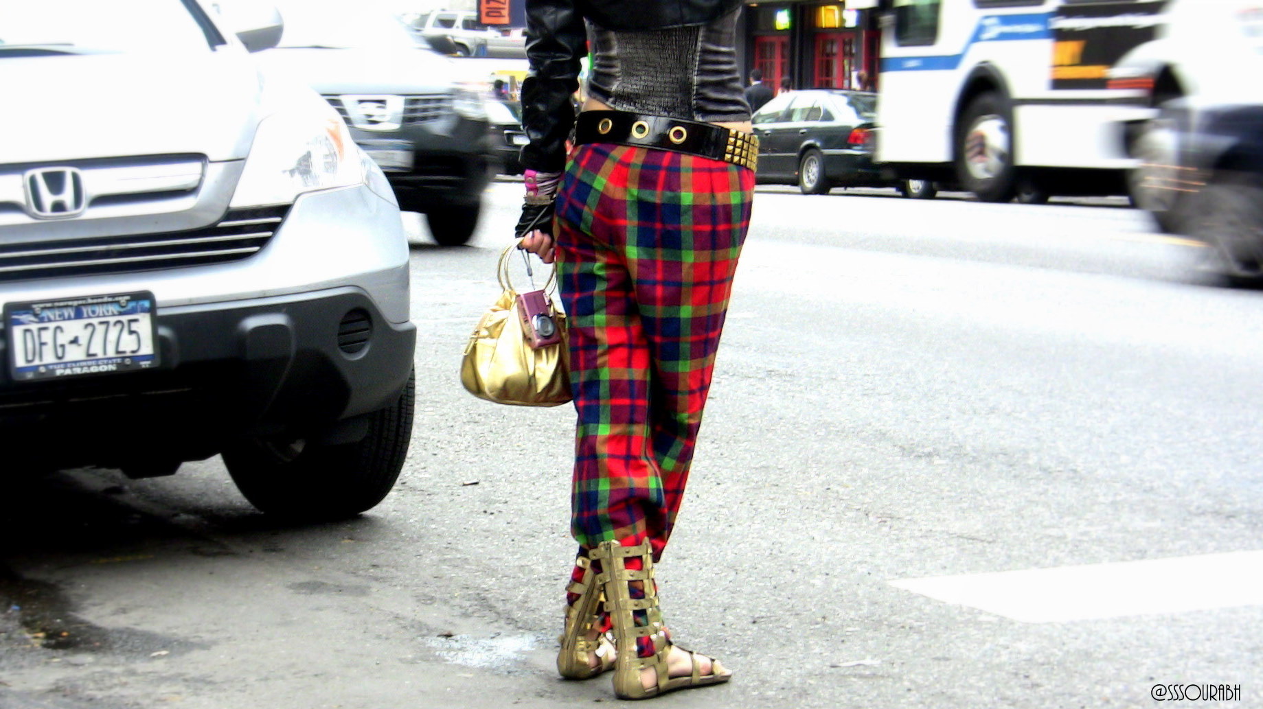 Tartan has swung like a pendulum, sometimes severely replicated by all living mortals, and other times outright banished. Leaping out of a banished phase and back into a seemingly shallow peak, tartan is slowly making its way back, particularly with trousers. Worn by men and women alike, the bold colors are rather alarming at the onset, but grow easily on the eyes over time. With it’s twin design plaid which is much more popular due to its minimized and easily replicable look, the transfer of the design into the home setting, onto anything from drapes to linens, is somewhat refreshing. I used to gag at Dad’s old pics sporting the look, only to realize that the same look is rather tasteful when sported by mannequins and yours truly. Starting off as gutsy street wear and transitioning into catwalk, brunch, and club wear, I can envision its paler version infiltrating the suit trend briefly, too. Thanks to Topshop/Topman and Club Monaco, we can surely anticipate a few more patterned legs before the nostalgic look dies out again, given that its hype begun as early as pre-recession 2008.