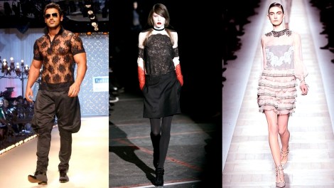 Goodbye sequins. (Well, almost). You have dazzled us enough through crystal winters and gaudy summers. Admittedly I liked the pop of shine look, and the way a subtle series could accentuate an otherwise drab outfit. But it seems that flashy is going to gradually make an exit for another accentuating trend that will most certainly meet with mixed reactions: lace. Perhaps not a grandma’s lace but a more sheer and sexy one. Utilized in simple tops or skirts, extending from simply leggings and gloves to entire bodices, it gives the adequate amount of peekaboo whilst leaving enough covered for imaginations to soar. While sequins easily transitions from women’s to men’s lines (thank you Zara and Armani), being a guy, I currently cannot fathom wearing something lacy; it makes me wonder what form lace would have to take on to become unisexual. Nothing comes to mind, besides perhaps sheer shirt dressed Bollywood boys who deserve praise for braving it and catapulting the trend forward in Asia (and placing bets that it will not cross the Atlantic!). All in all, it is a creative and interesting juxtaposition to the digital age, yet having toured the lace-sewn streets of its sexy Belgian origins on the gold-dipped city of Antwerp, I can candidly validate that lace is used for more more than just renaissance umbrellas and table cloths!