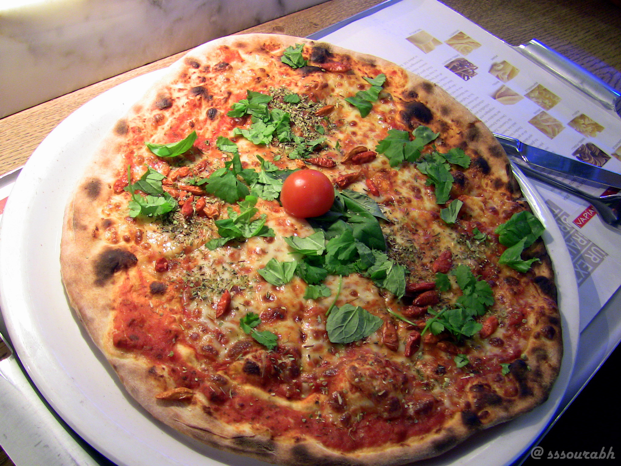 I am most passionate about the seemingly ordinary but remarkably fresh pizzas. Dough that is not dry nor grainy, but perfectly crisp on the outside and tender on the inside, giving it an almost gold sheen. The sauces seem healthy and not overdone and preservative saturated with too much salt, something that is reminiscent of the west-of-the-Atlantic chains. The classic cheese and tomato pizza is my favorite, owing to a hint of mint intertwined in the sauce. But a mushroom glazed topping kicks in the necessary flavor without introducing an unfamiliar bitterness. And with a fine selection of grated cheeses and the abundance of basil, mint and parsley leaves to choose from, not forgetting the freshly grown cherry tomatoes, the pizza transforms from a quick bit to a decadent treat. The latter activity always generates tremendous interest, owing to the fact that one can pluck leaves off of the plant library to suit one’s tastes. When is the last time a chain ever gave you the sense of belonging?