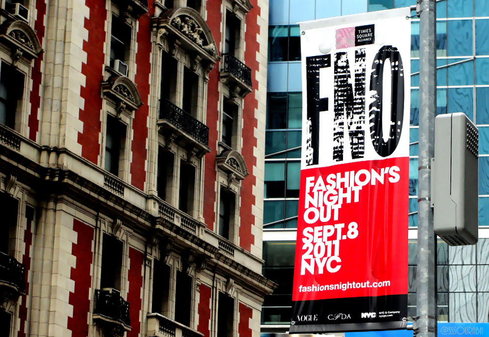 Fashion’s Night Out (FNO) is a glittering example of Anna Wintour and Diane von Furstenburg’s economics-class-driven idea to boost consumer spending by engaging customer interaction with their favorite brands and brand endorsers, namely drool-worthy and idolized celebrities who grace the streets in the flesh to share the air with their fans. While shared across 700 countries, it is now an excuse to have a party, with stores carding at entrances and serving cocktails and offering live performances amidst littered clothing and accessories. From Armani Exchange’s tee distressing bargains to Kenneth Cole’s personal kick off amidst paraphernalia, brands lure and endure simultaneously.