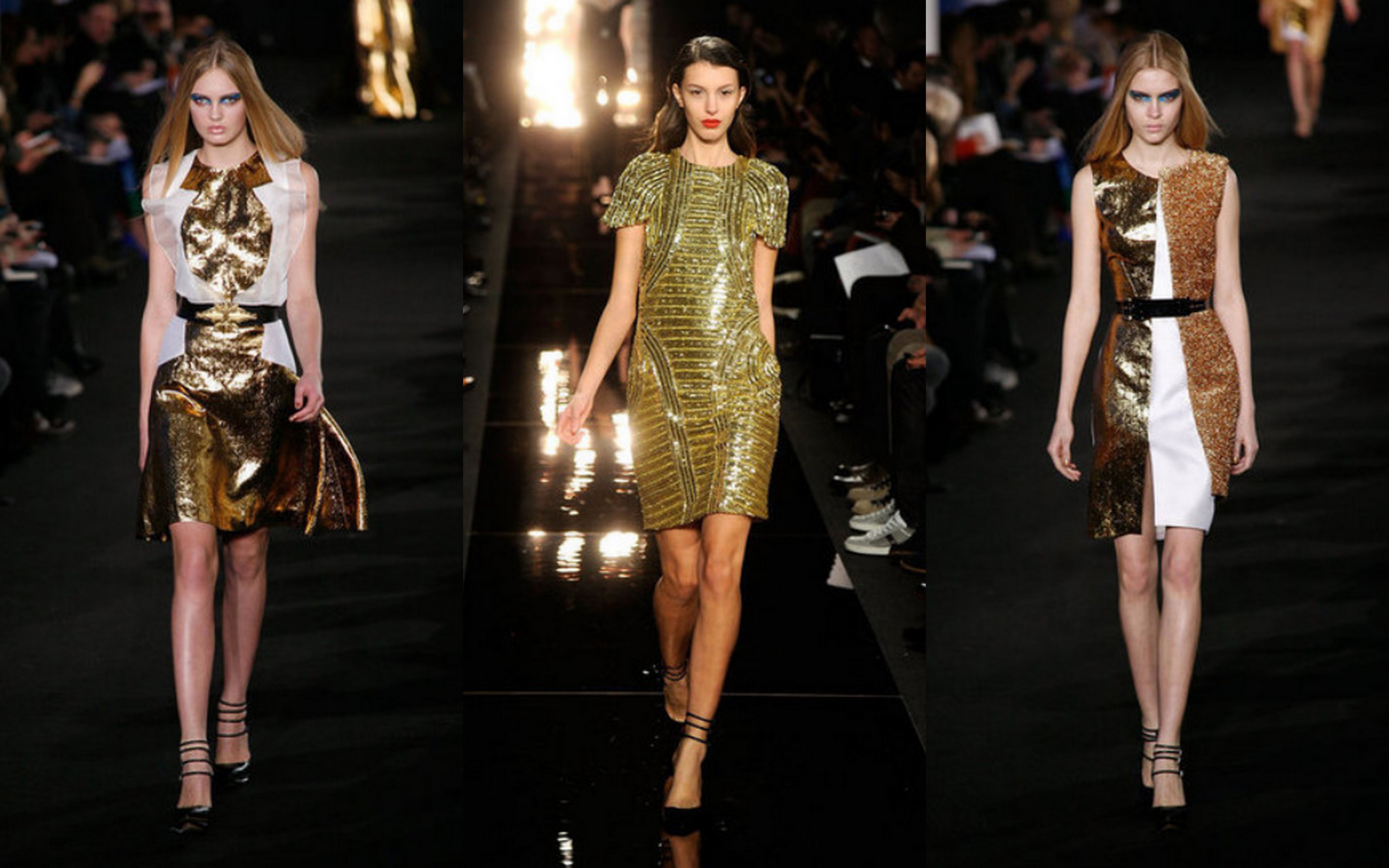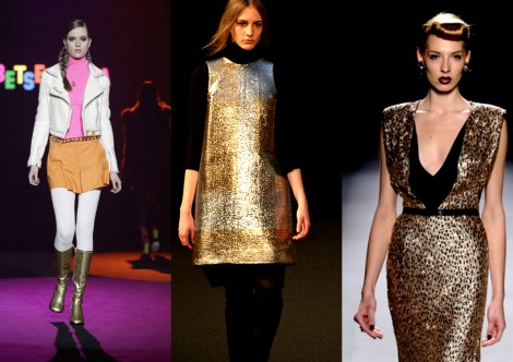 Gold (and to a certain degree, silver) battles it out as gleam of the year. While gold leather, gold sequins and gold foil prints rock over tees, dresses, accessories and the likes, sequinned prints are laced all over longer fabrics and shoes alike (cheers to Betsey Johnson’s fantastic boots!). If bling is your thing, you will be sold on the gold.
