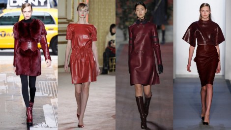Speaking of red, one of my favorites, who can stay away from red leather? With a personal fetish for a mischievous tee and a newfound leather jacket soaked in the hue, I was over the moon on finding this to be trending this year. Though I feel the “all leather” dresses are rather unwearable, accessories and jackets and belts in red leather are a fiery welcome to the mundane browns and blacks that stack into the shelves of leather lovers. Quite a contrast to last years yuppy fluorescent colors, this undertone of sherbet drives ecstasy and urgency. Heat it up!