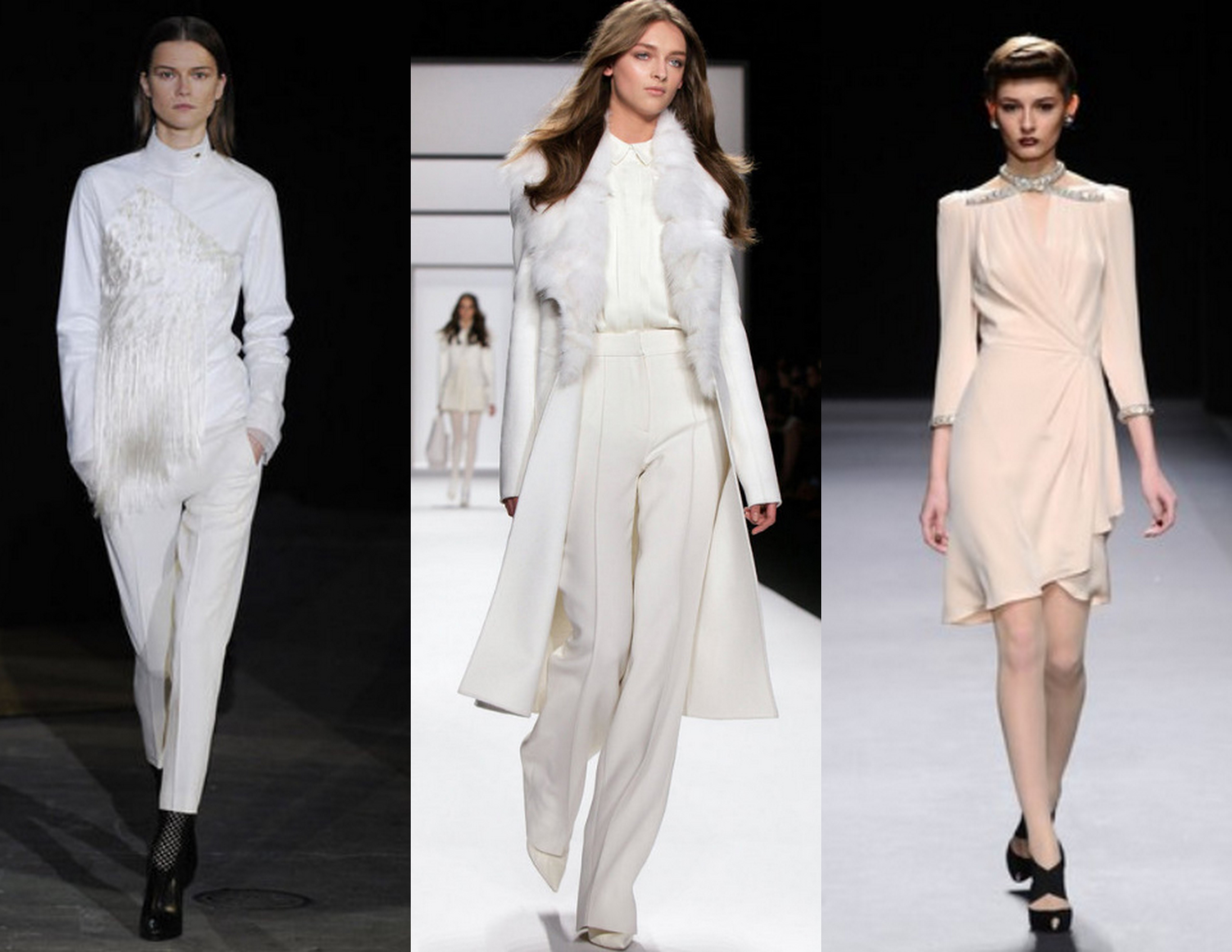 Angelic as it may seem, fluttering and sometimes frumpy, and so inevitably prone to dirt, white is in. Mendel and Philip Lim both dressed their catwalks in white suits. White sweaters, skirts, dresses, both for guys and ladies, all splashed brightly to ensure that there will be snow this winter. And we will be dressed in it. Will the little black dress now be rechristened to the little white dress (LWD)? Either way, just stay away from the red wine.