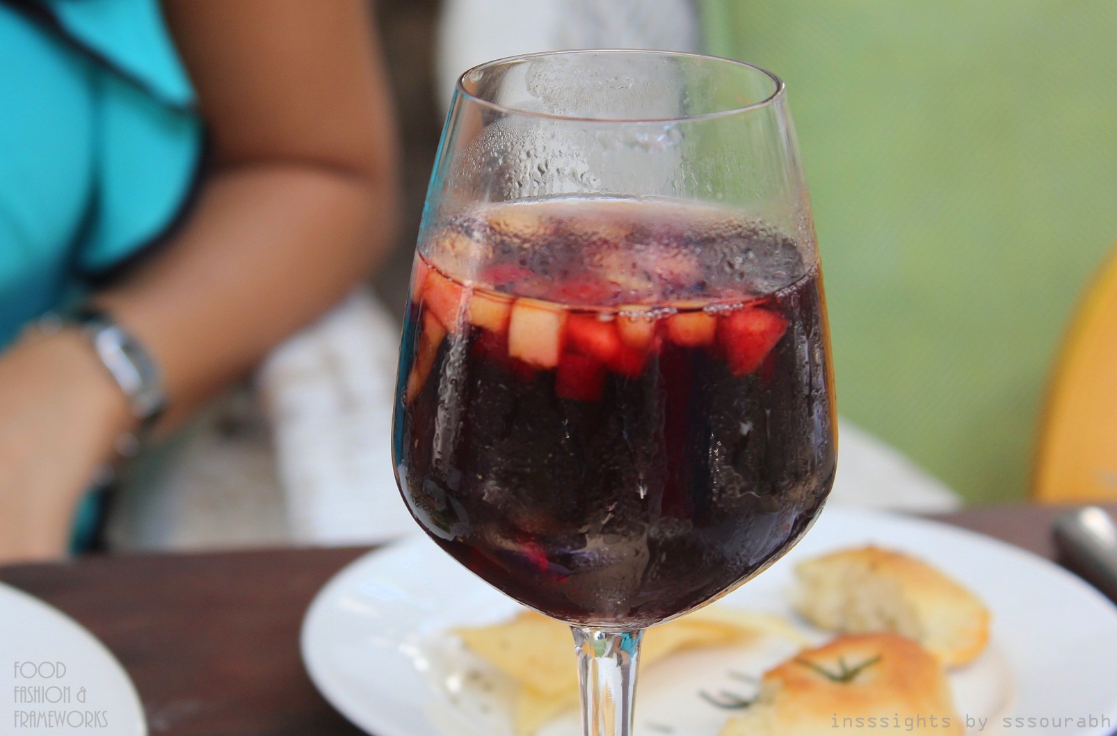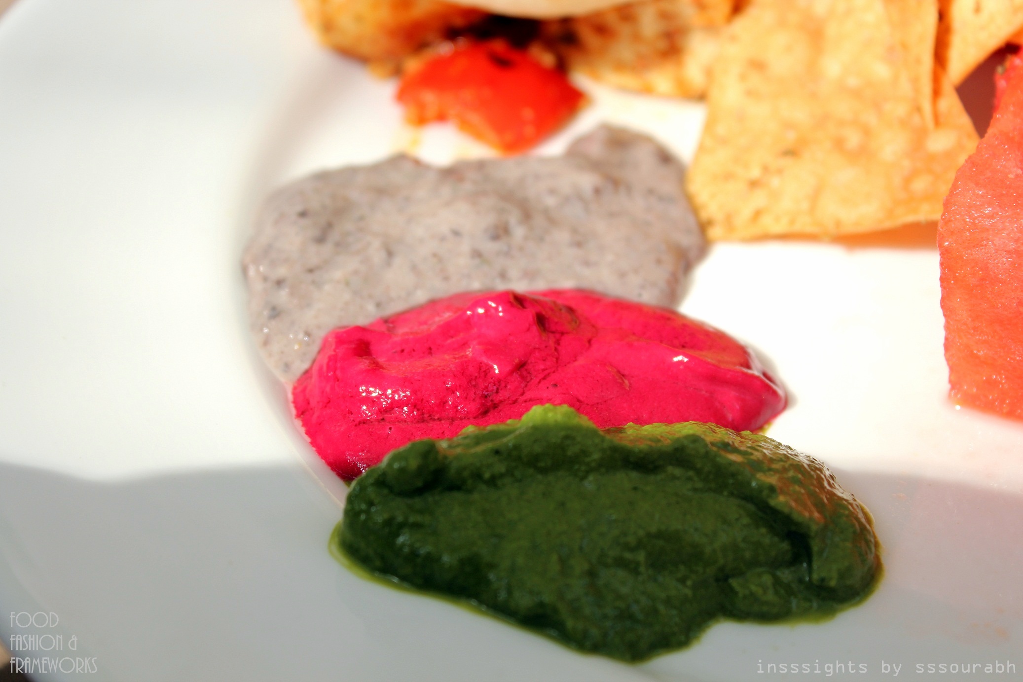 As my companions and I tumbled on the wobbly stones to our outdoor seating splashed with afternoon sunlight, we passed slews of kitty party women in glimmering yellows and oranges, proclaiming the colors of the year, a fiesta of kids with unwilling parents, hipsters with tattooed biceps and embroidered shirts, and as I realized on subsequent visits, a plethora of bollyvistas and tellyvistas from the world of haute.