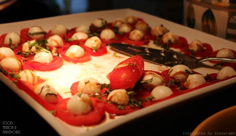 A similarly conceptualized rendition of tomato with mozzarella cheese with a tangy vinaigrette did not meet with as much applause, merely due to its feeling of déjà vu. Though admittedly, the succulent jazz of red and white in both platters was a breeze for smoked up eyes hiding behind aviator sunglasses.
