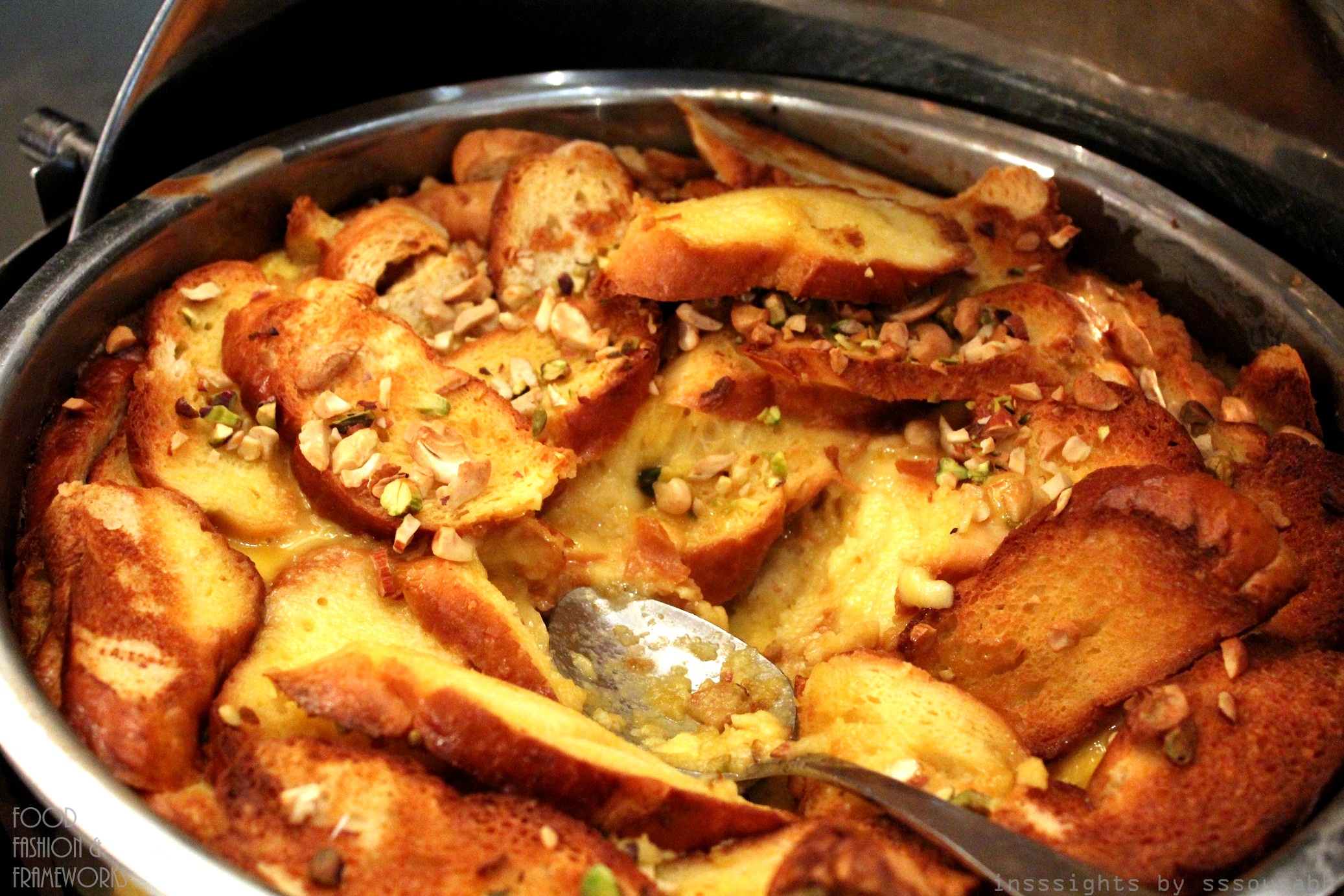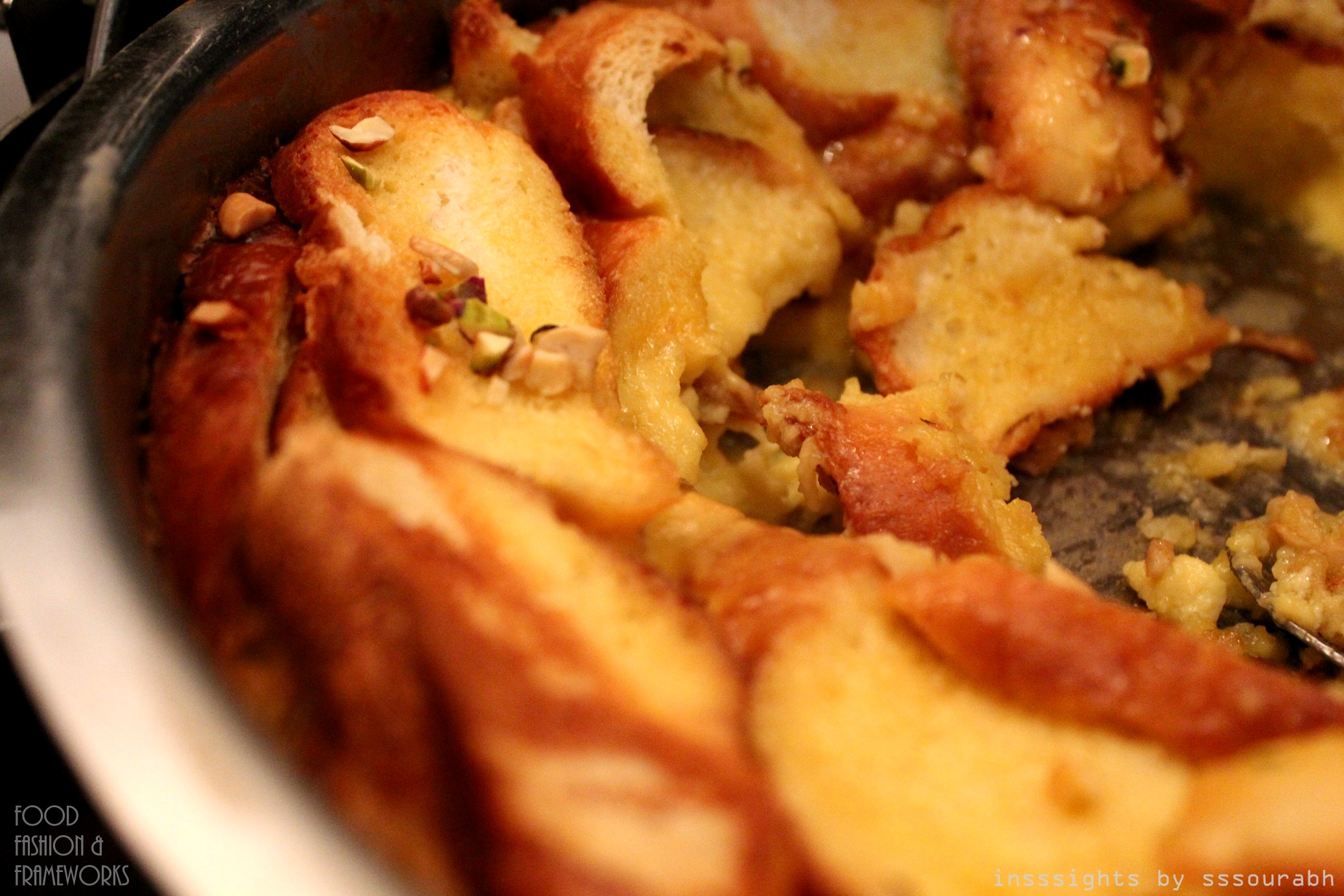 When time finally justified wobbling over to the dessert table, inflatedly full with what seemed like five watermelons and a well of alcohol, I was quite pleasantly surprised to see something that looked like it had sprung right out of mom’s kitchen. Shahi tukda, a bread pudding with toasted ends, soaked in milk, condensed milk and oil, and garnished with pistachio and cashews. With every bite, a spongy bread gave way for an avalanche of sugary saturated lactose infused goodness. Though drier than home cooked merriment, the generous dose of nuttiness more than made up for it.