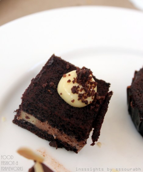 Given my never-ending affair with chocolate, I could not help but ogle at the petite cupcakes and cake cubes for eons before giving both a chance to court my palate. The cupcake was thankfully well portioned, reminding me that I wasn’t across the Atlantic where foods tend to inflate disproportionately, barring my recent trip to Delise, of course. Simply topped with fudge cream and a garnish of caramelized nuts, it was slightly on the oversweet side, but still refreshingly chocolaty. Moving onto the cake, its interlaced layer of moussey cream that barely held up the top layer of cake was the crux of its shaky taste. With a crumble in each bite, an overkill of sugar, and a texture that mandated buckets of water (not cocktails), this one was worth a miss. Perhaps I was too used to things that took a more grassroots approach.