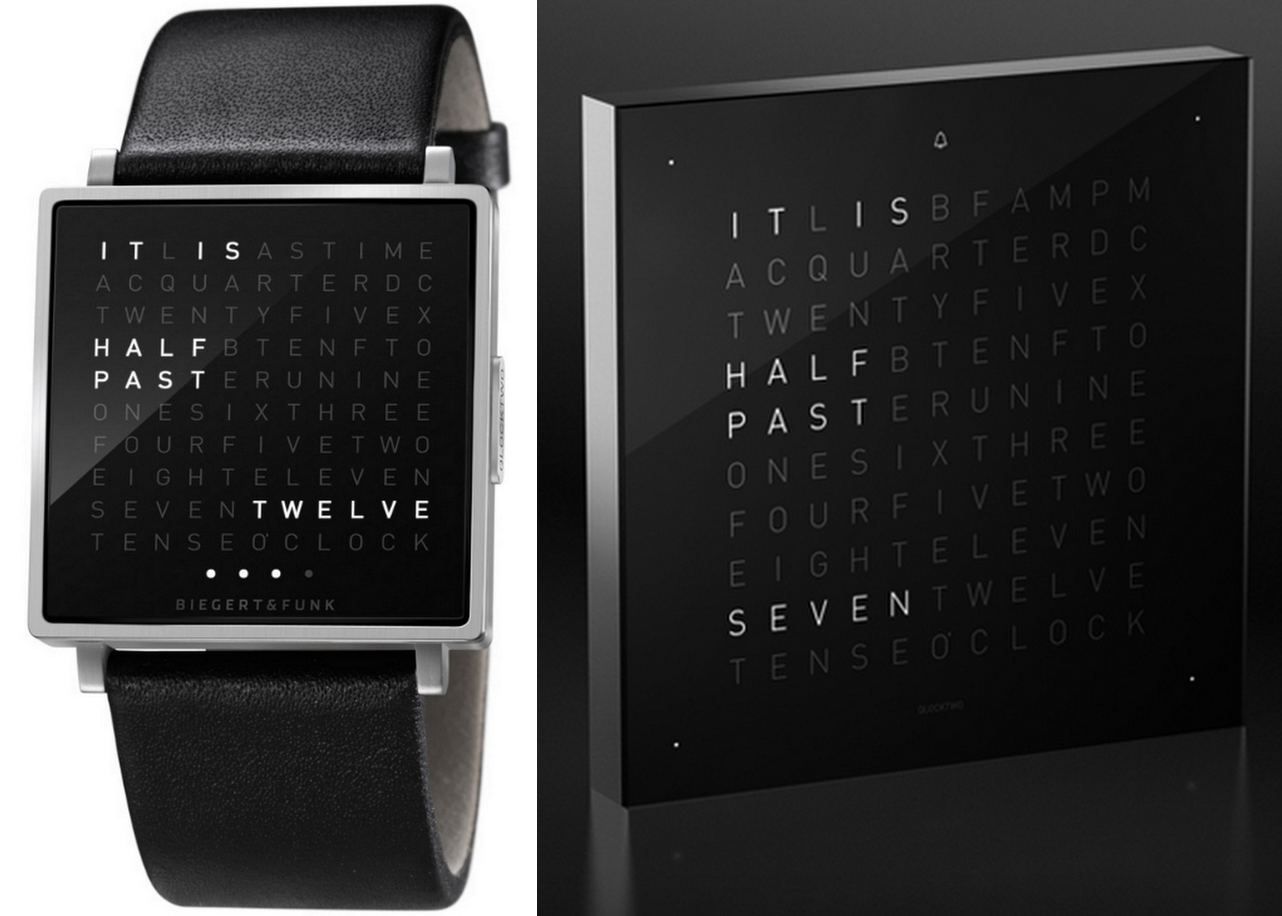 Time has always been my foe. For years, I have switched the hands on my clock to tell me a time distinct from where I am, mainly to dream, or sometimes to dream of being on time to something. Feeling my anguish, a fellow blogger showed me the award winning Qlock by Bigert & Funk, which simply tells you the time in words, prefixing the time with “it is”. Funky, after you’ve hat a moment to think. Actually the clock gives you five minutes to think, as it only displays the time in five minute intervals. While I admire the contemporary spin, which promotes the (languishing) art of reading, it frightens me with an omen of laziness.