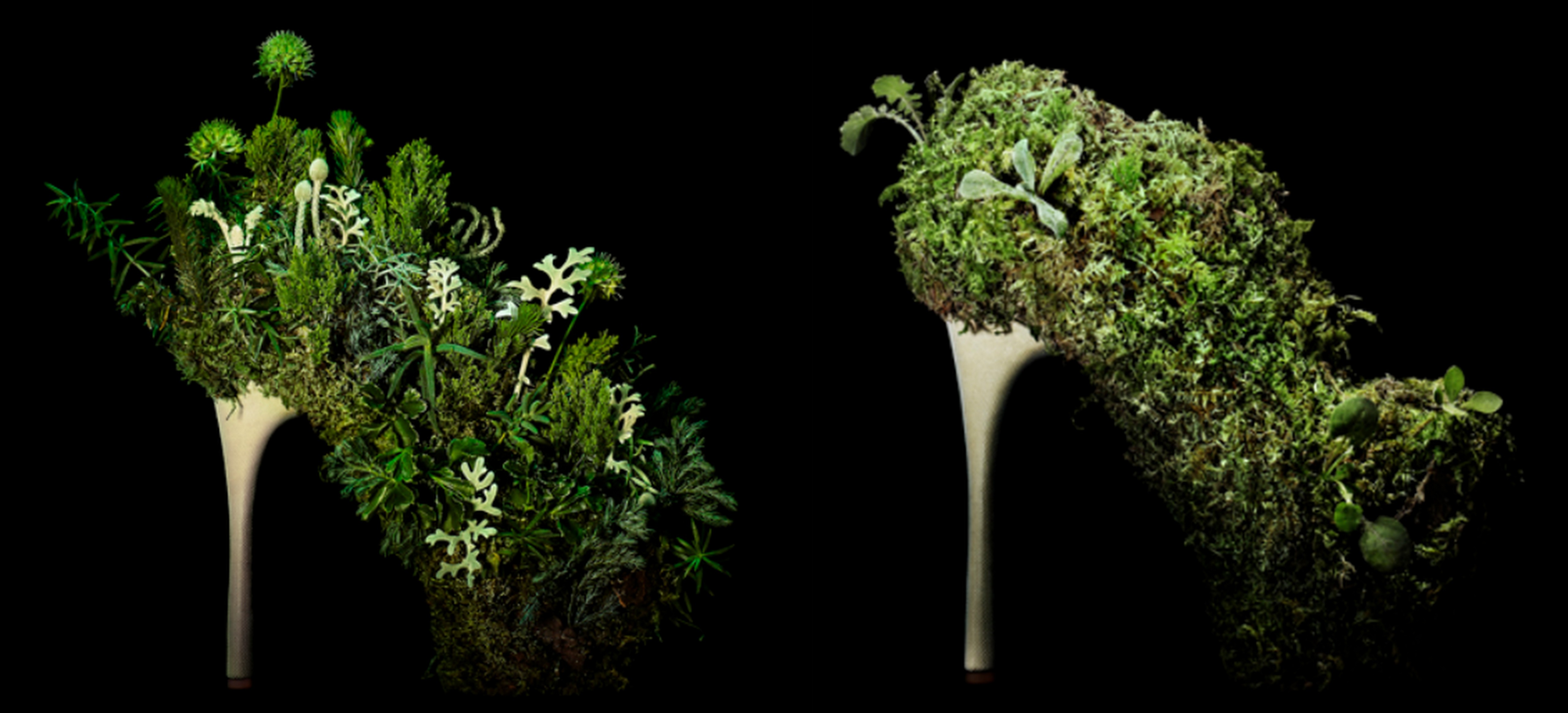 Masaya Kushino never refrains from making an appearance on out of hand observations. And this time, with a shoe labeled “reborn”, she definitely peeks into a less tech future where human and earth trod foot in foot. It looks like something Lady Gaga and PETA would jointly endorse. While definitely drawing eye rolling attention, it will probably draw accolades in all but one type of location: a grassy-green outdoor event, where the shoes would become chameleons.