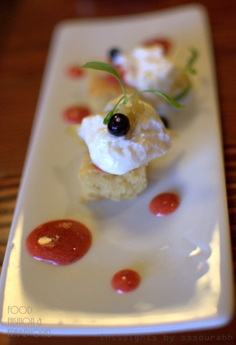 The dessert itself was sans chocolate, much to my disappointment knowing my addiction for all things chocolatey. Yet, it was expectedly visually astounding – a toffee date cake topped with celery ice cream, with a tomato strawberry sauce in irregular circles. I am always enamored by offbeat ice cream flavors, and this vegetable inspired one was no less. I have been told that vegetables make filling ice creams due to their starchy and fibrous nature, as they mingle well with the cream during solidification. Topped with berries and greens, we were reminded gain of the organic farm to table approach that was swept skillyfully in the dessert! Although well assembled, I looked over the tasty but comparatively less punchy cake component. The complementary contrast of flavor and texture was a tasty finale to the entire meal.