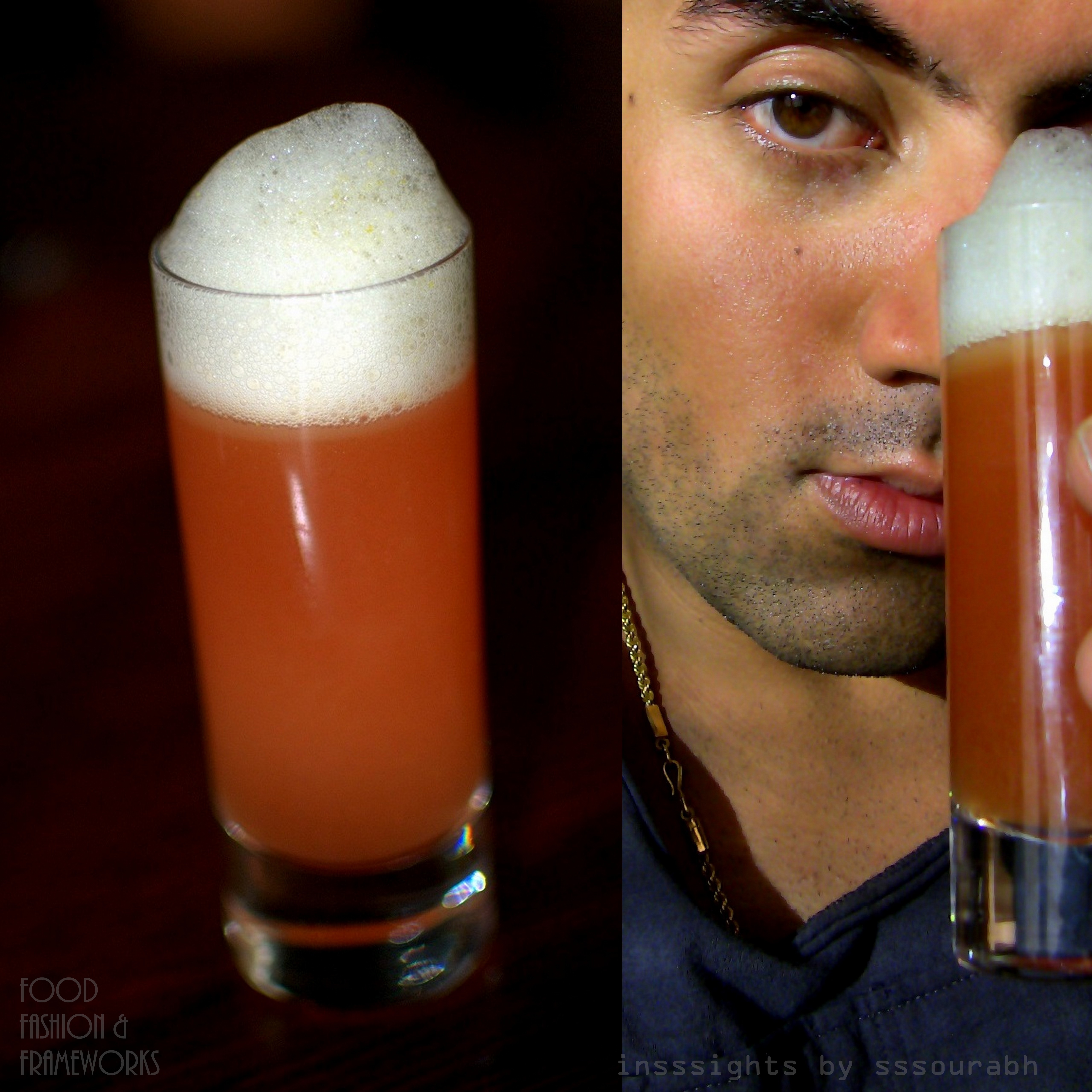 A brightly tainted long vial with a citrusy celery root and tomato juice arrived to quench our thirst after a day filled with sunny air, dry wines, and long drives on winding roads surrounded by grapey vineyards. The froth atop was slightly soap sudsy in texture, but the long, cold vial was inviting and relaxing.