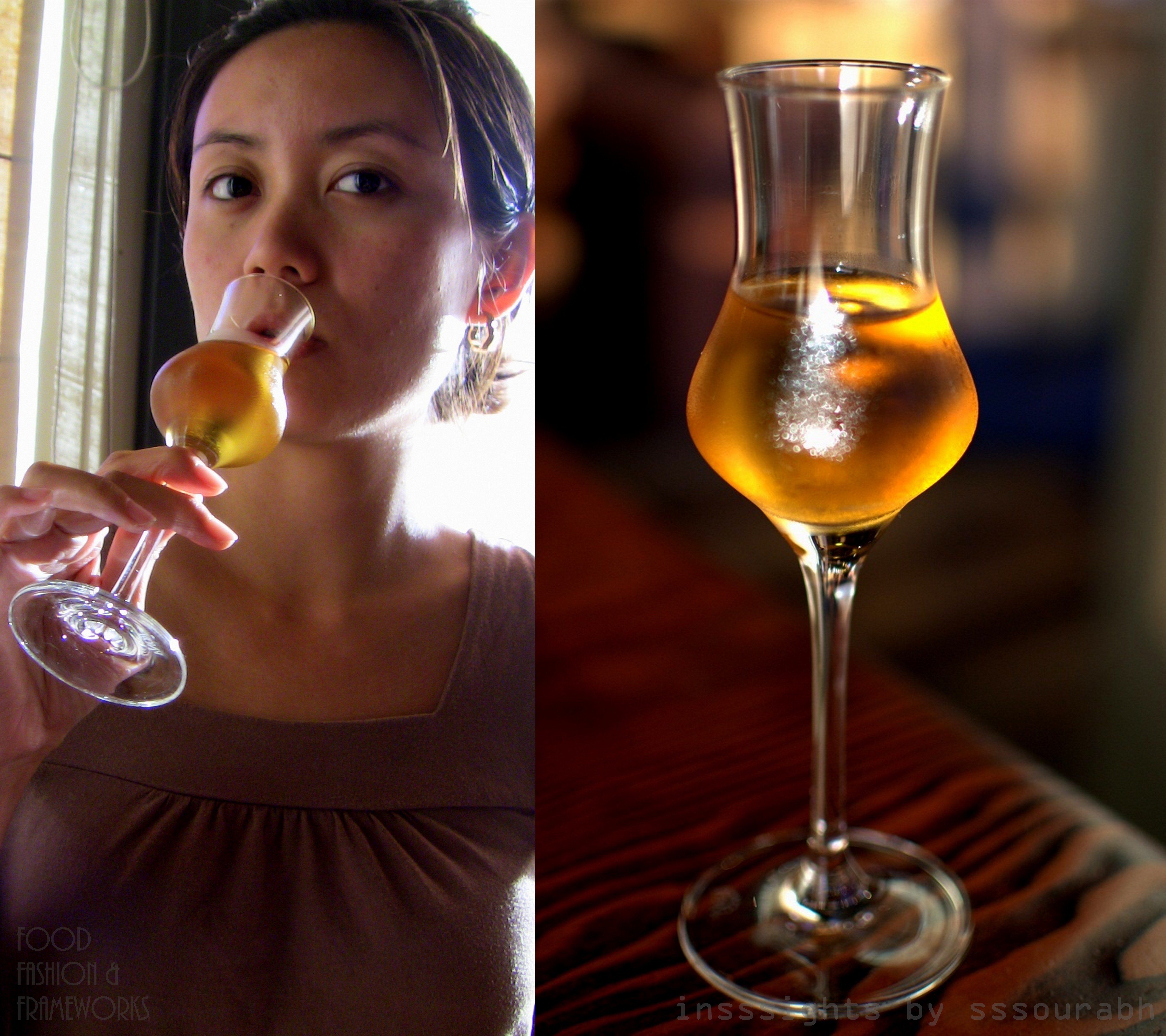 Despite the fact that our body’s wine content was higher than the water content after a day in the vineyards at Napa, we ordered dessert wines as an in between reminder and an ode to a joyful day. While not remarkably memorable in taste, with sweet sherry and honey tastes, the petite glassware evoked cute emoticon worthy smiles, particularly the white wine whose vial looked like a rosebud ready to bloom, or a seductress in between two nights of splendor. When paired against the reflective setting sun, the hues soaked us in jolly moods and inventive splendor.