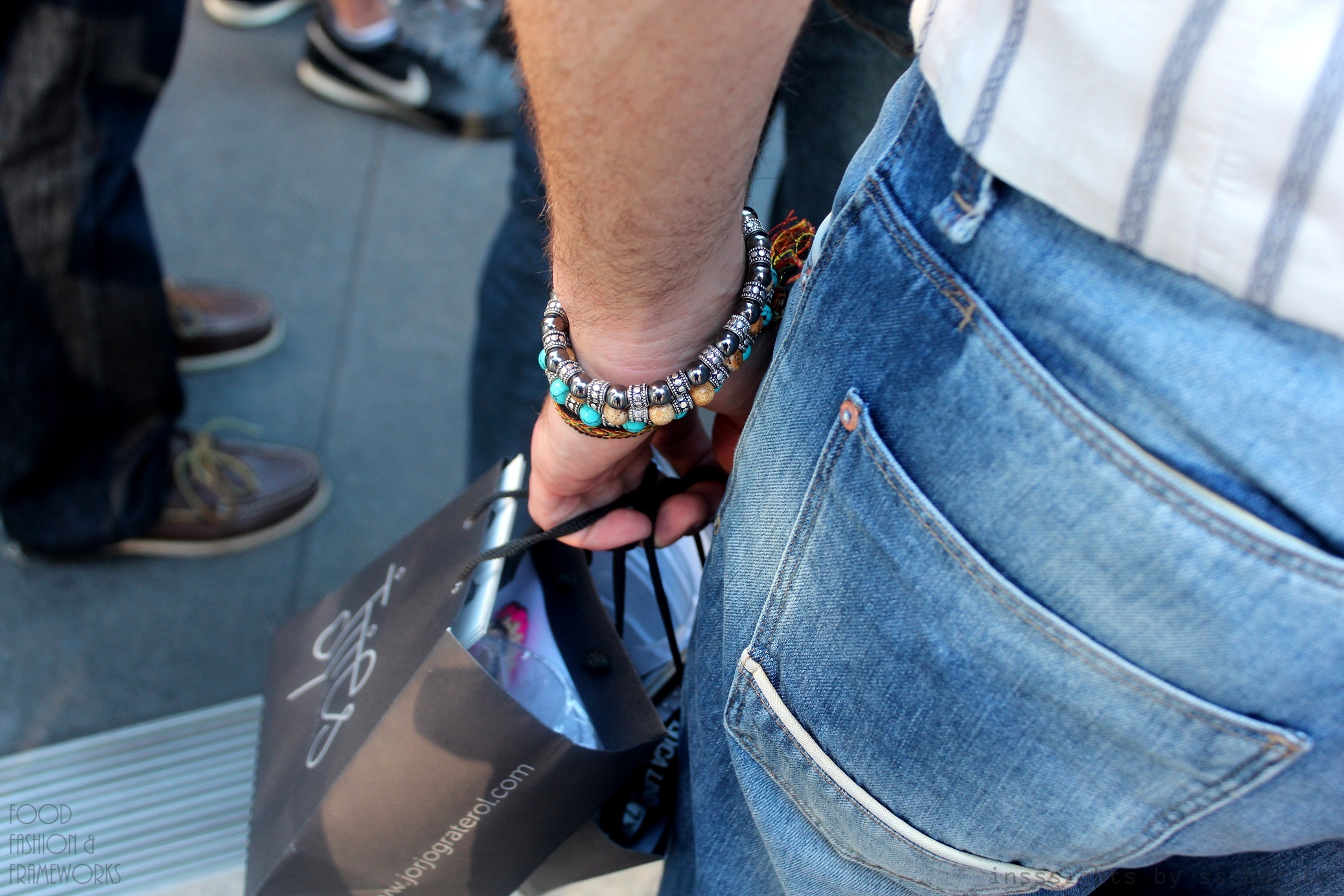 Ending with myself, the two outfits that I was most proud of most definitely mandated sunglasses. Both looks can be caught on lookbook, here and here, so feel free to hype away! Starting with my Narcissus sequin sprinkled shirt which glittered on gym toned shoulders (as I was told), paired with a turquoise green pair of Topman skinnies and an openly worn River Island silver polka sea green snood, this was a winner for its soothing eye appeal. The second was a more love-it-hate-it-but-you-cannot-ignore it type of punchy cocktail that hit your eyes and shot your reaction right out. Purple Topman skinnies were paired with Middle Eastern turquoise suede shoes which had only my Vegas studded jade belt to play eye tag with. Topping this was my silver pinstripe and peekaboo purple check shirt by Sergio Verri, making me akin to a tin woodman in the sparkling sunlight, but a party wolf in the night light. Thankfully it was cloudy most of the day.