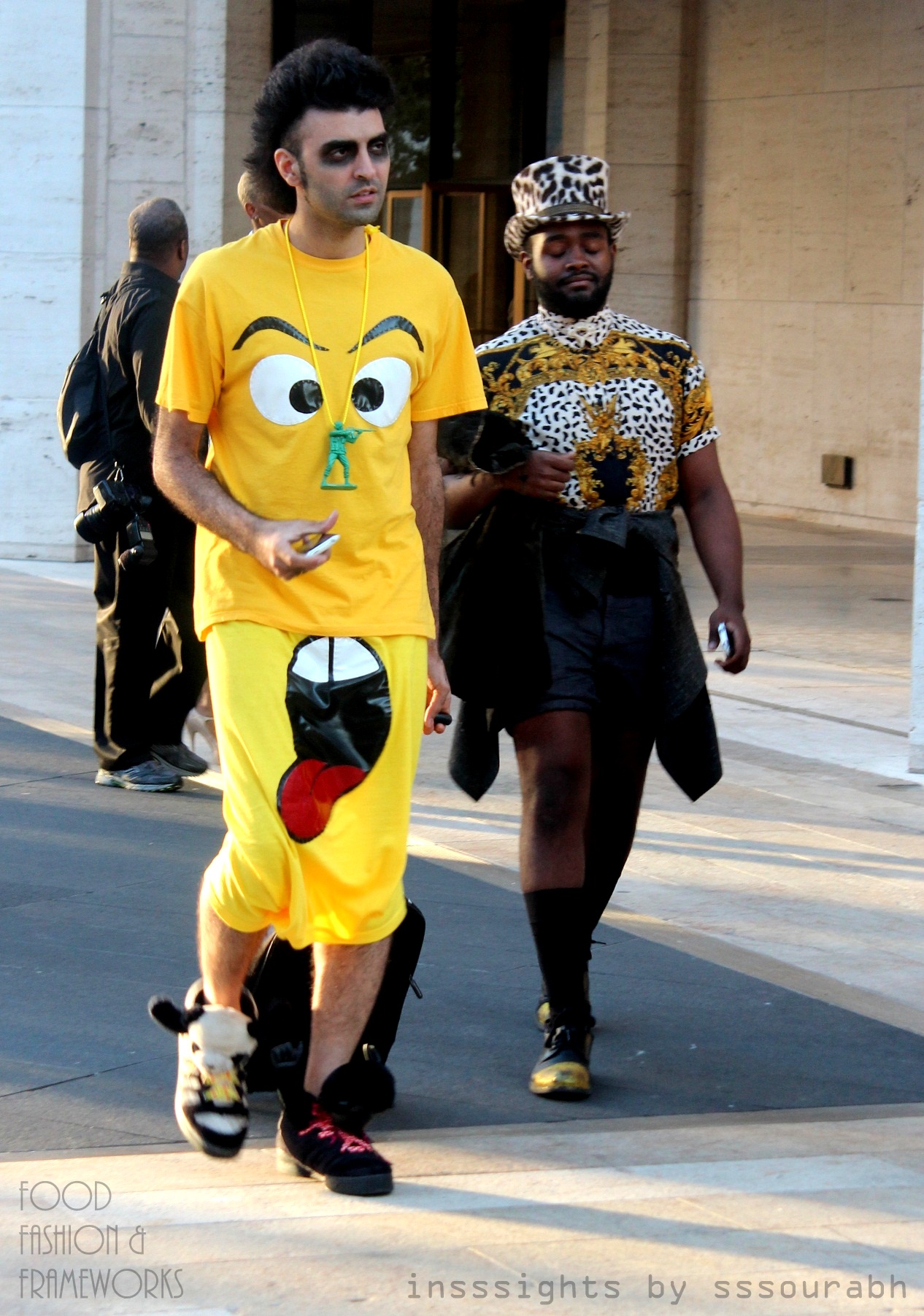 Blame it on summer or on a new fad, but shorts were definitely a staple for many, many guys. As were unlikely or quirky accessories and fabrics to match the shorts. On the plausible end, shorts were paired with vests, deep vee tees, or blazers, while on the other we had eye popping quirks.