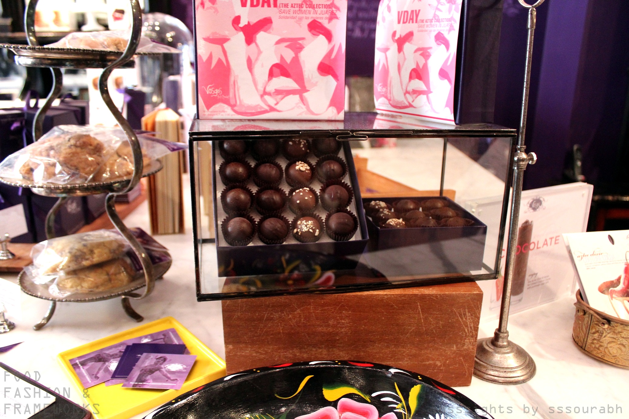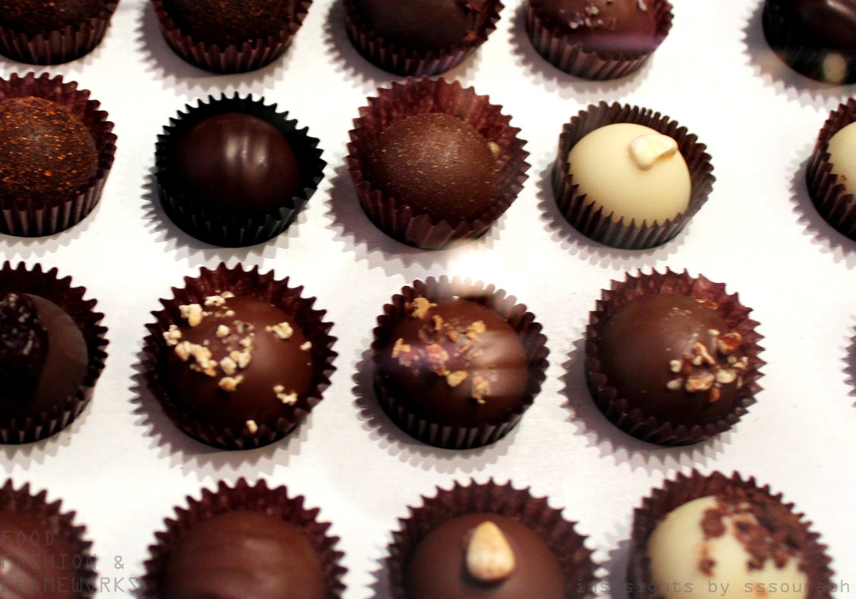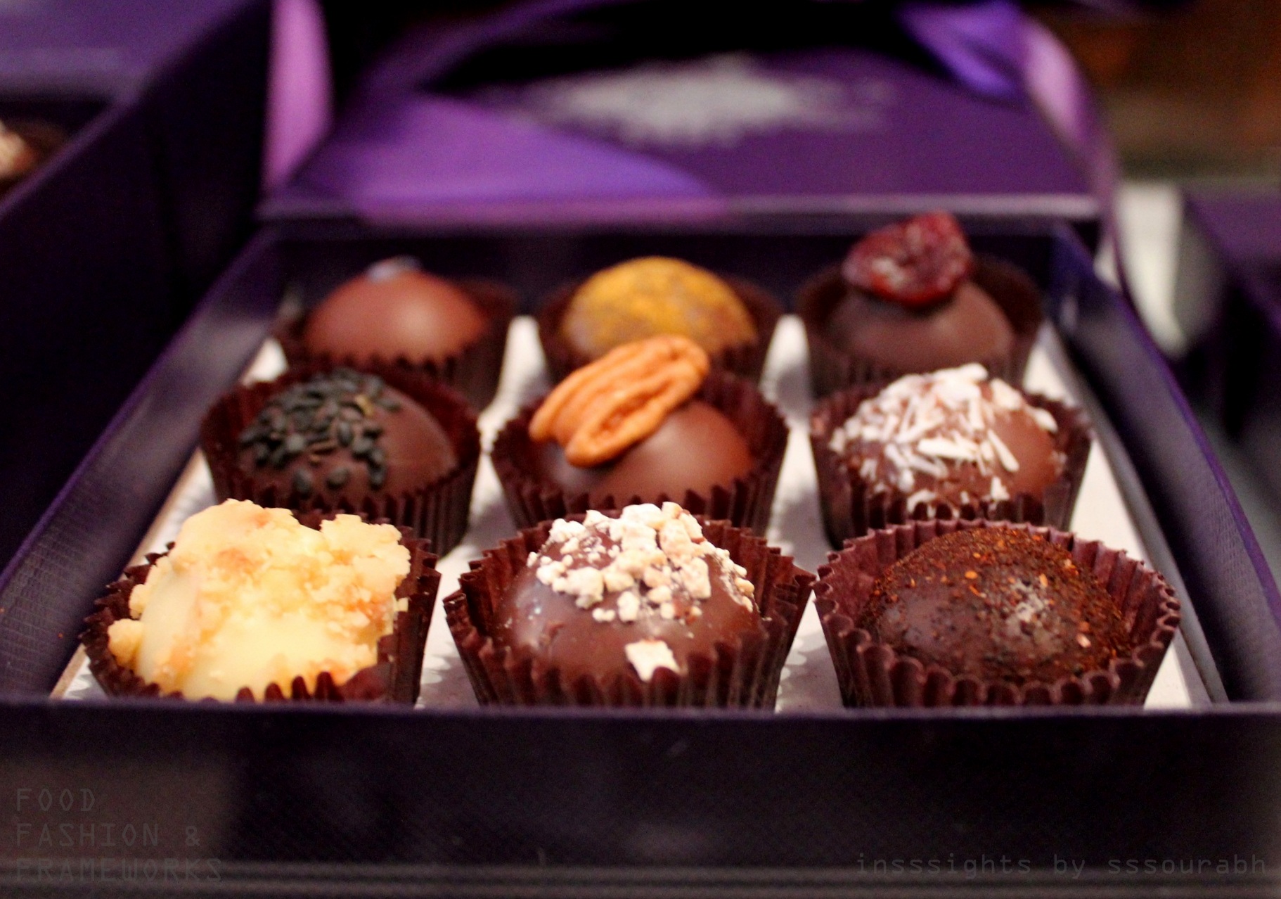 While waiting under gigantic chandeliers that clinked in the still air, a visual wander showed that Vosges had much character. Lolly candies dressed up as skulls made frequent cameos, the most photogenic one being on the bay window, with the fiery red chocolate bars gaping at the ashes of dried red chilies that were reminiscent of ghost chilies. We waited in the enchanting, eerie atmosphere for our chocolate truffles to arrive.