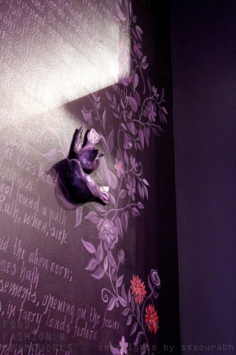 The countertops swarming with peacock candle stands and ceilings horror show chandeliers dripping with peacock feathers created a subtly horrifying ambiance. Both times I was there it was streaming daylight, and yet the interiors were on the darker side, making it even more inviting.
