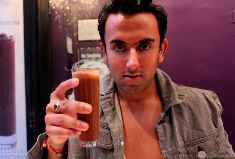 A subsequent cold version arrived in a tall cylindrical vial which made sipping a requirement more than an option. The cold spicy punch was not as impactful, since the bitterness reminded me of my much loathed beverage: coffee. Nor was it as aromatic. Yet the flavor was nonetheless chocolaty enough to soak my mouth and teeth with a familiar taste. The accompaniments of crunchy chocolate and whipped cream more than made up for it. The latter was gladly licked up by a sexy comrade.