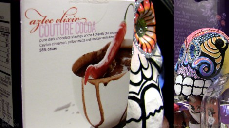 We plopped off the wooden planks and onto the floor, full of rich chocolaty landslides, and wandered the store, picking out favorite grapefruit infused and curry chocolate bars to remind of this wonder-hole in our comfy bedside crevices. I was tempted to pick out some hot chocolate, owing to their strategic placement next to Mexican skulls or titles like Aztec elixir couture cocoa, but refrained from knowing that my gym hours would rise exponentially.