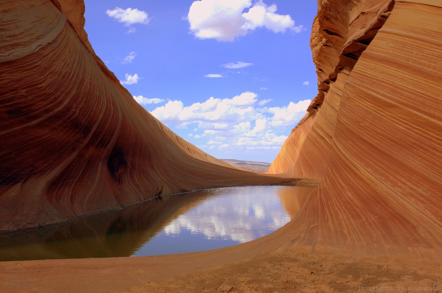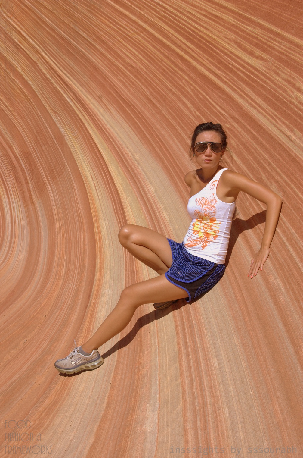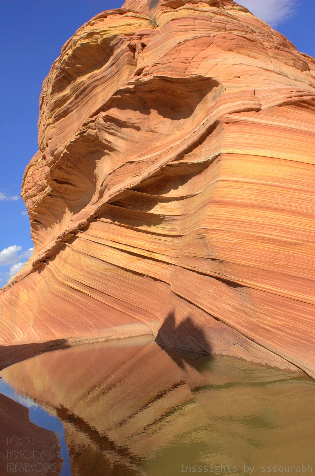 The Wave was a surreal texture of horizontal hues of desert red, sunset orange, fiery white and suntan bronze. With death gnawed twigs and branches at its feet, the lush blue water was a mirage that captivated out lenses and imagination. Aside from the curvaceous linearity of the Wave’s natural construction, the water body became a focal point of our work.