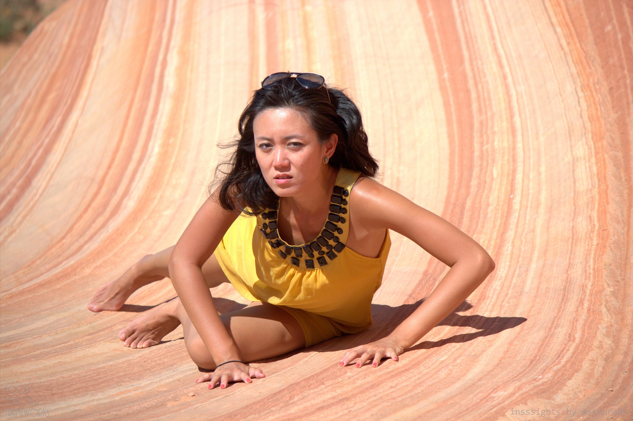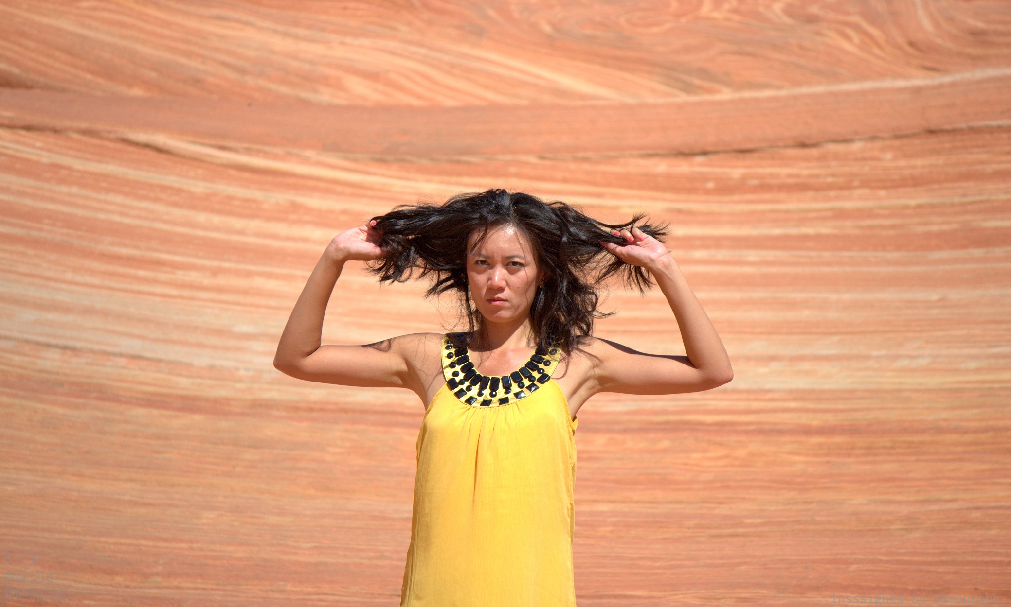 Notwithstanding the enchantress in hypnotic yellow with black bling and wispy hair and pouting expressions maintained through a scorching, sunny terrains.