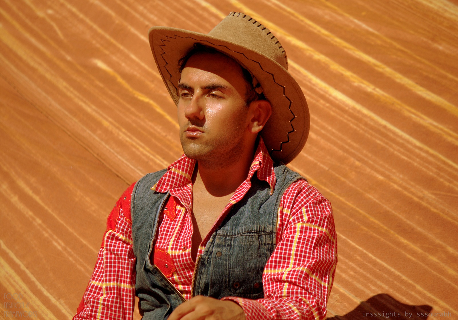 The fashion infusion commenced in our packing phase, where instead of hiking gear, compasses and walking sticks, we packed designer clothing, coordinated accessories and zoom lenses, aiming to seize the opportunity for a photo shoot. For what better way to remember an enigmatic, enchanting place than with a series of ethereal blowouts? Thus began the quest of the cowboy in red plaid and a matching hat, albeit without a cow.