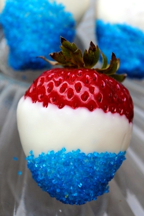 My infatuation with bling continues, and festivity begs for it. So why not have red, white, blue and sparkle… or stars, stripes and studs? While studs can replace the starry aspect in fashion, sparkling sugar goes a glinting-ly long way with food.
