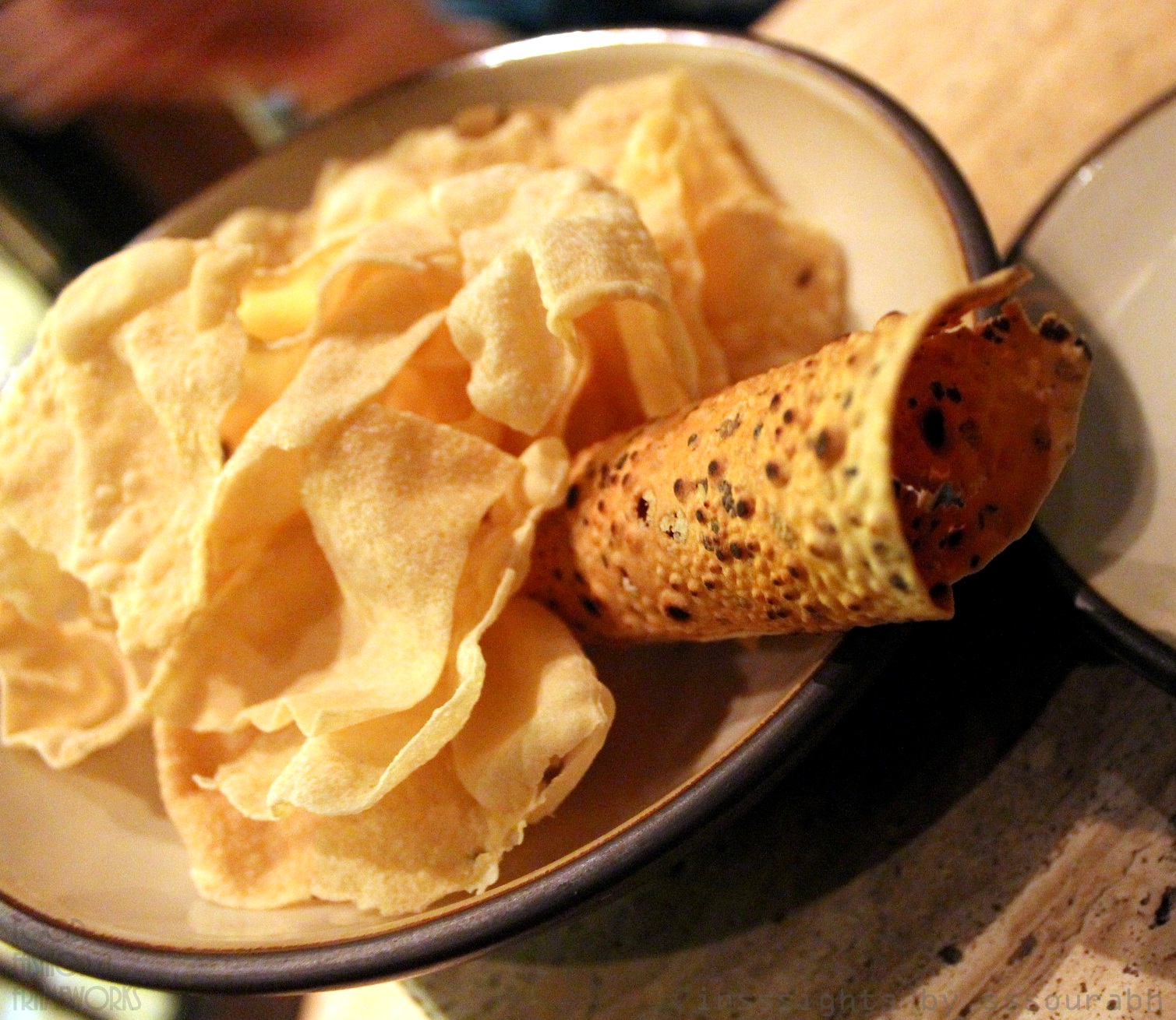 Accompanying these were the homemade poppadums, two rolled up and roasted, and the others classically flat. Both were sumptuous, the former laced with fennel and spices, and the latter like a lighter, fresher version of the otherwise dense tortilla fritter. I naturally went for the spicy one, accentuated by its whimsical, peephole inducing shape. Infrequent dipping into the quad of sauces – coriander, tamarind, cherry tomato and coconut yogurt – were distracting without being too helpful, but I sure wasn’t complaining. For mindless dipping is always a guilty pleasure.