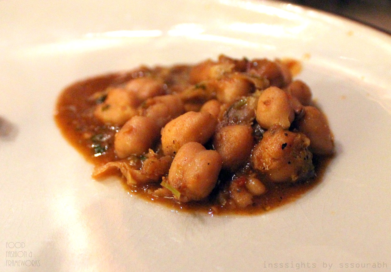 Chola, i.e. chickpeas in a tamarind, tomato, garlic and spice broth, has also been a regular performer in mom’s Punjabi kitchen orchestra since my toddler days. I’ve learned two measures of granting approval to chola: they should retain the entire shape of the chickpea when the eater gapes at them, and should melt gently in the mouth when inhaled. Plus, the dish should look solid or at most fluid, with no watery separation of the broth when plated, even in a flat plate. My biggest turnoffs entail the broth defying gravity and spreading sideways on a flat plate. The server recommended the chola as Saffron’s flagship dish, and it was nothing short of splendid, fulfilling my checklist, and brimming with heat emerging from its metal container.