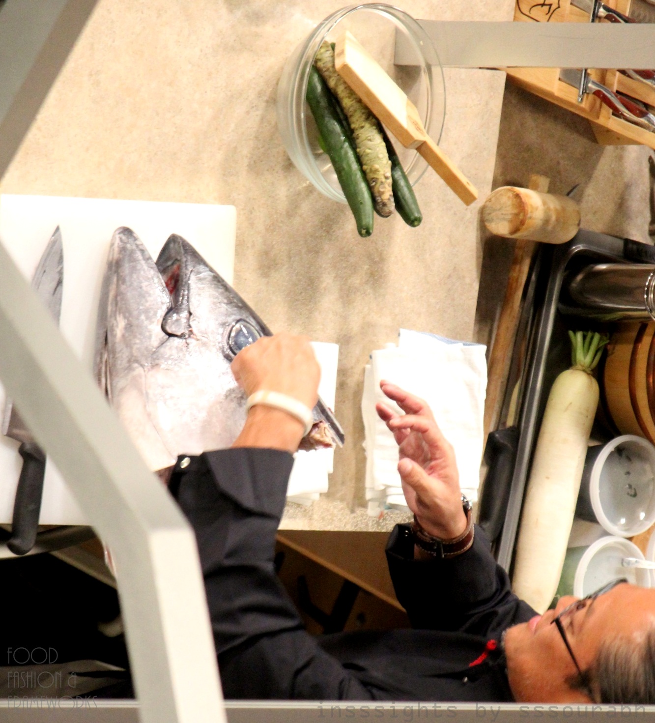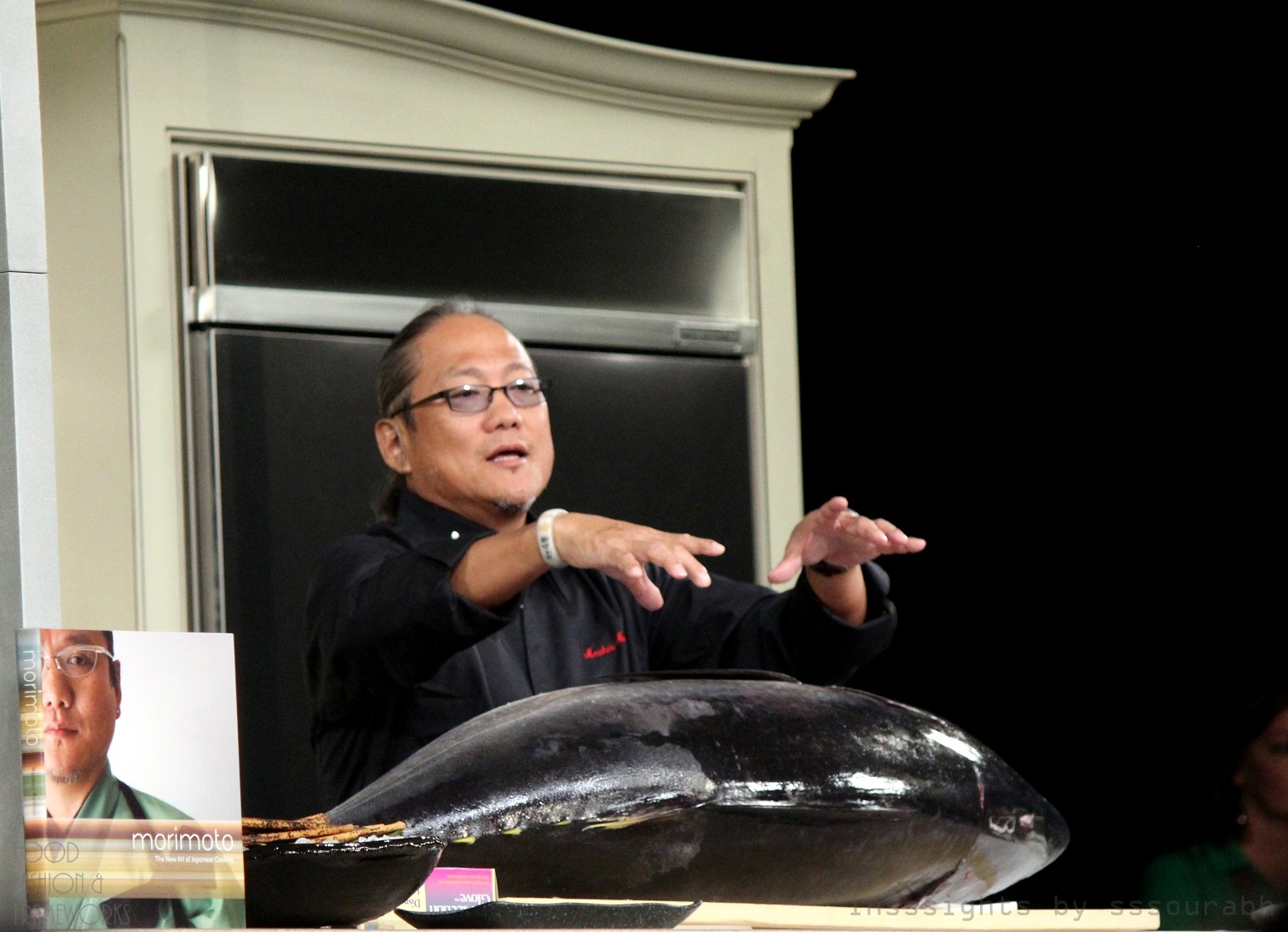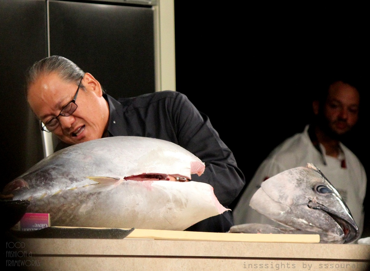 I started off the celebrity chef demonstration cycles with none other than Chef Morimoto, showing the technique of knifing up the biggest cod of the ocean! His placement in the audience caught many off guard, except me, for I was right behind him!