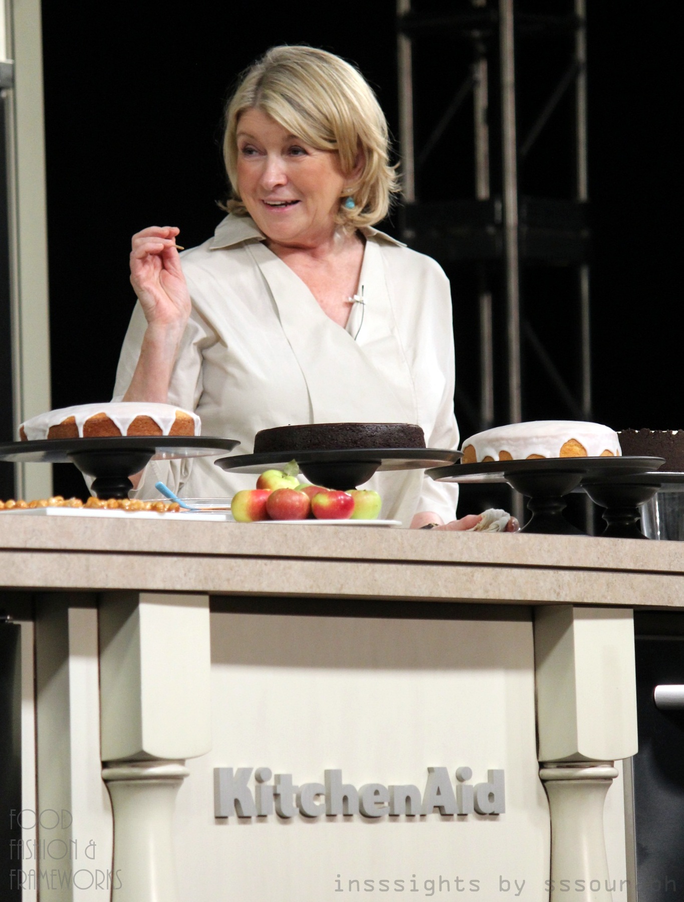 The in betweens were Bobby Deen in a dapper plaid Southern outfit reminding everyone that his mom was doing okay, thankfully. As well as a stage saturated with the likes of Chuck Hughes, Guy Fieri and Robert Irvine. The blinding flashes were enough to mandate sunglasses.