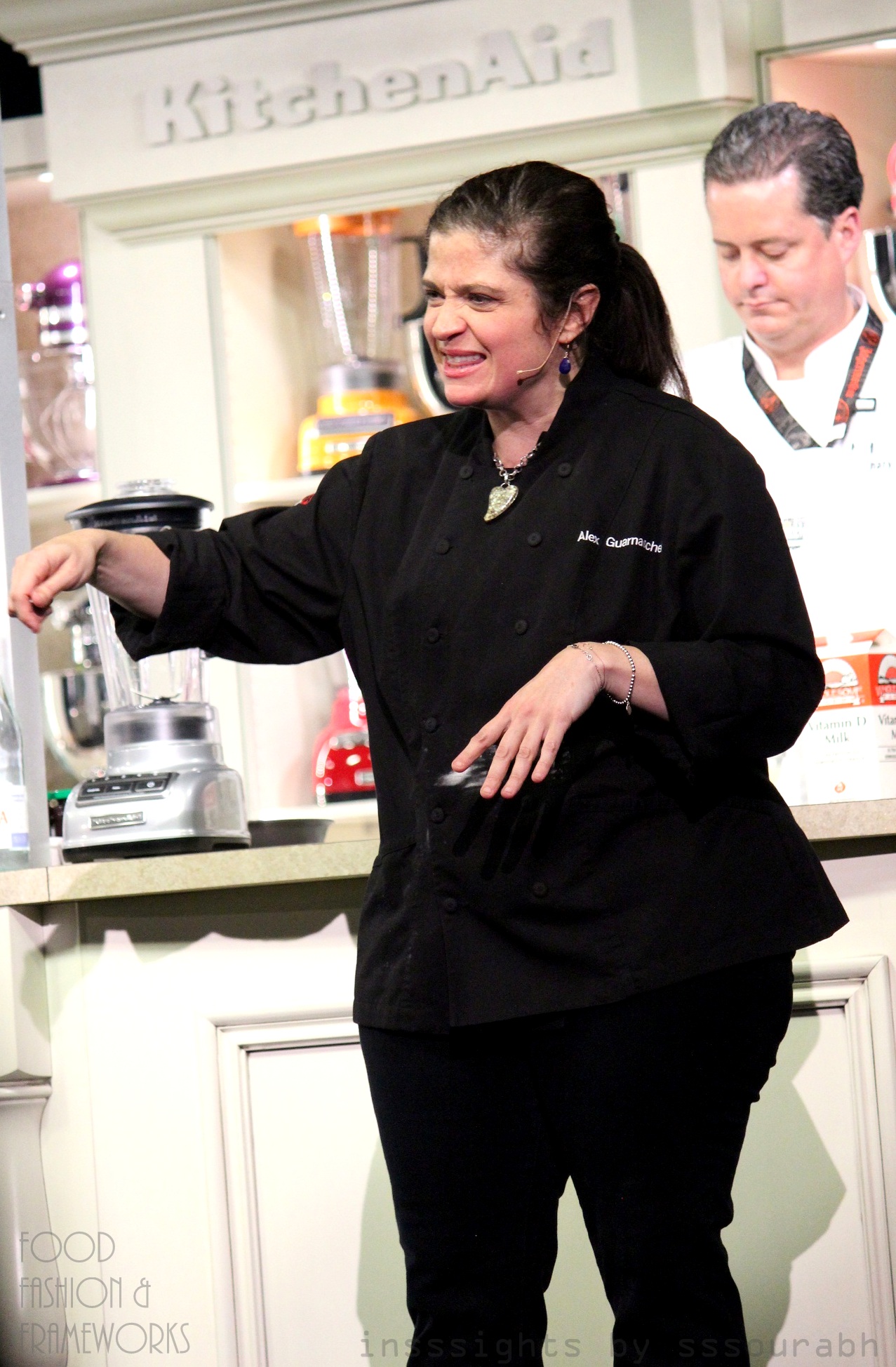 Alex Guarnaschelli lived up to her peppy on screen charm, by talking to audiences during the entire making of her multiple layer crepe cake, mocking herself, praising her colleagues, and dishing out advice on everything from endurance to bringing up kids to how to survive competitions. The comical interlude by Rachel Ray and Guy Fieri and her whimsical response further fortified her heartiness and chill attitude. Its no wonder that her true-to-her-roots charm is so addictive for all her fans, for she was exactly what she was thought out to be – honestly fun.