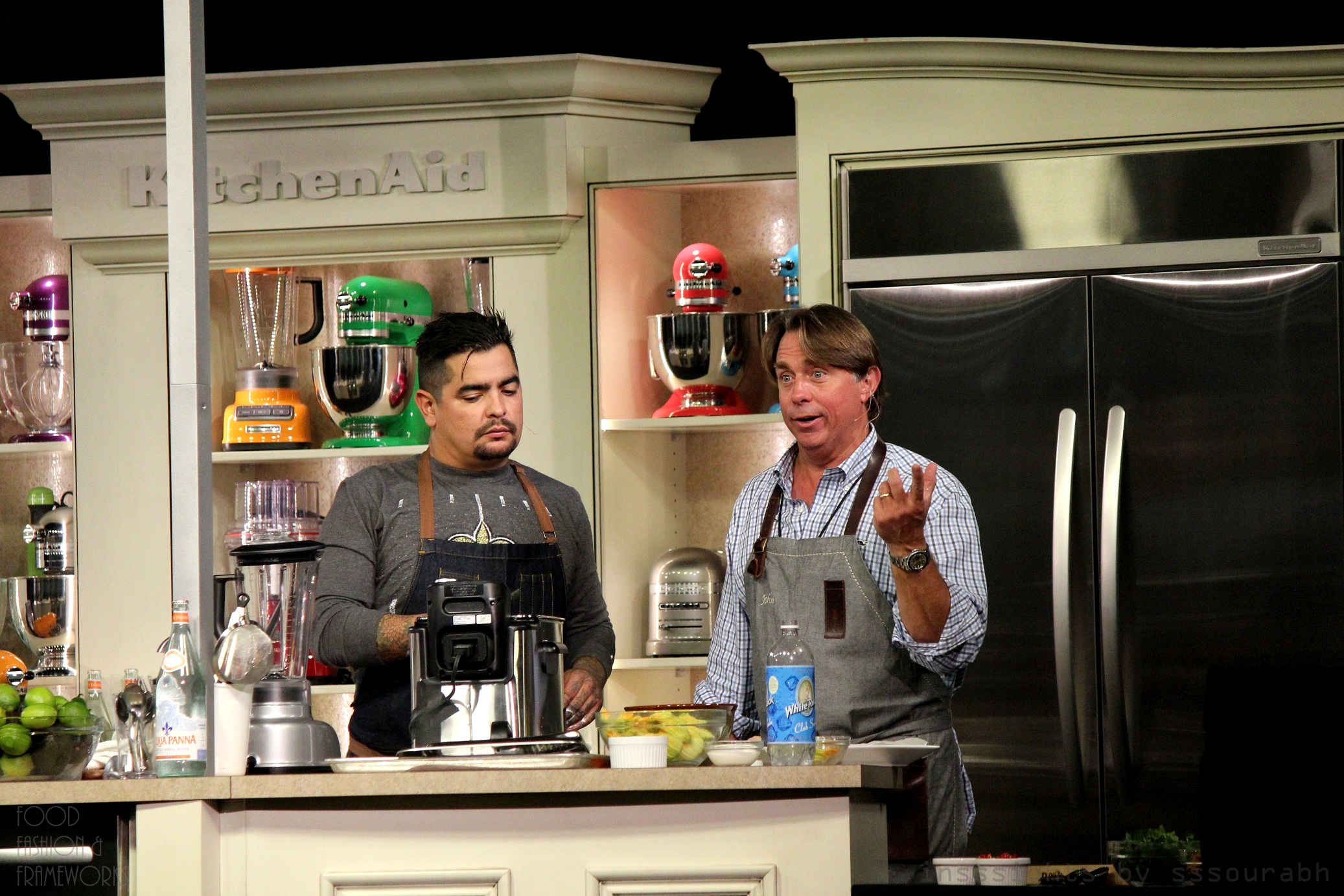 John Besh and Aaron Sanchez concluded with anecdotes from a spice tour, playfully bringing their bromantic chemistry to life while cooking up a concoction that was easily forgotten owing to their jokes about married men!