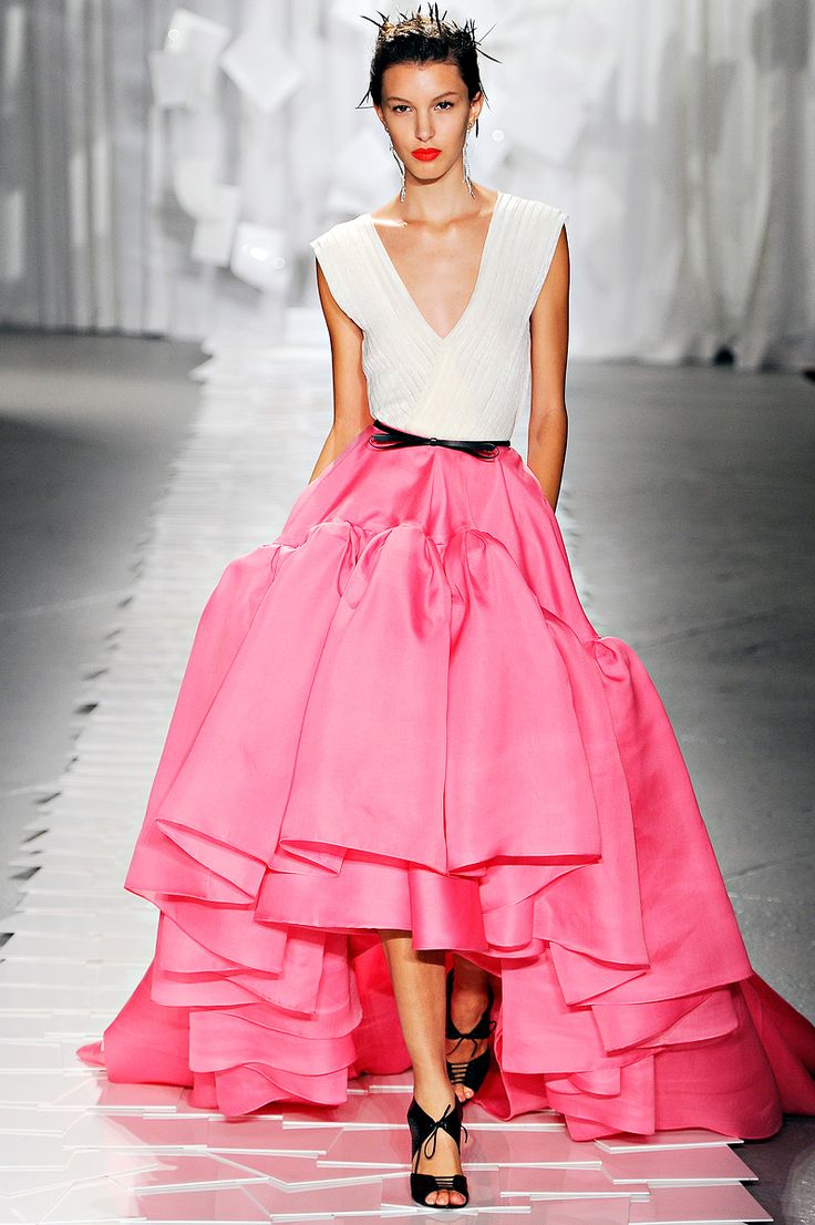 An interesting concept this, for while on one hand the two tone from the 90s is back, where dresses and tops can shimmer as they change their colors in different lights, contrasting colors are back too. These are the styles that make a dress seem like a two piece or a saree feel like a scarf on a skirt (called a half-and-half saree). The colors are bold and the effect is refreshing.