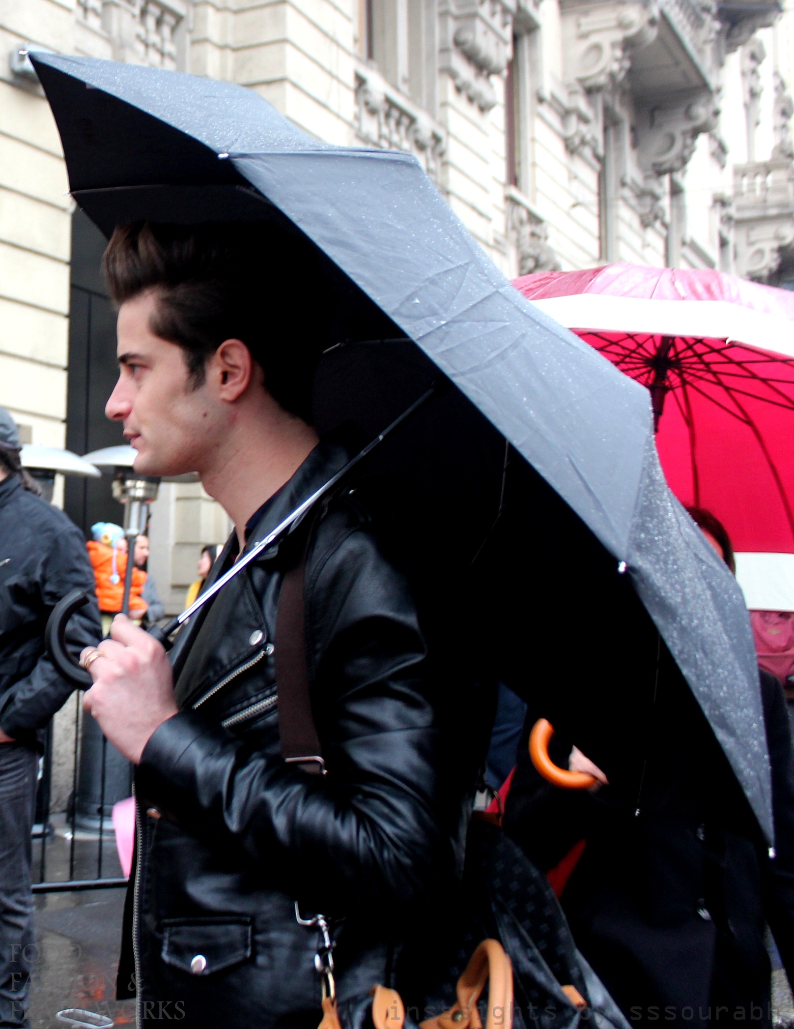 Well instead of sunglasses, the plethora of umbrellas at every corner was probably the most disruptive of all. Camouflaging styles, literally blocking people watching abilities and abundant in ghoulish hues… these seriously made for my least favorite of staples. Having been brought up on a raincoat culture, I simply shrugged the excess water off my hair and shoulders and kept going, in and out of shows.