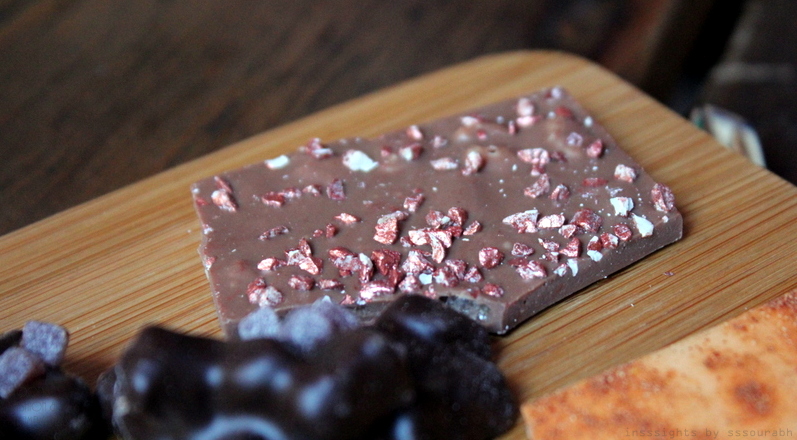 The cluster of hazelnut milk chocolate was fairly ordinary looking, something I could’ve picked up in a mainstream arena. A textural valley of adventurous troughs and highs, it crackled and disintegrated into chocolate splinters in my mouth, owing to the high quality chocolate. Perhaps good old routine is a reliable backup after all?
