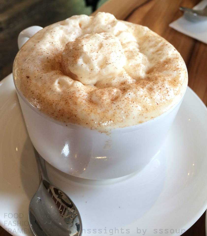 With sunlight splashing off the walls, it was no surprise that I felt enchantingly warm and homey behind the French windows and Santorini blue mosaics, which while Greek by color, were Japanese by styling (Anderson had of course spent his childhood in Japan). A white tree branch acted as an awning to a few tables, giving the ambiance an understated and restful feel. We sipped on warm cider, frothed like cappucino with visible cinnamon specks. Intriguingly enough, the mix of spices was a distant reminder of mulled wine on the streets of a Christmas market in Paris (vin chaud!) with the appearance of one in Vienna.