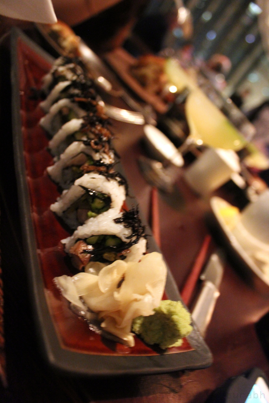 The sushi was definitely more refined in its cut, quite distinct from supermarket varieties and sized up to cupcake proportions with clear distinctions of well cooked rice on quality paper and fresh stuffing for the roll.