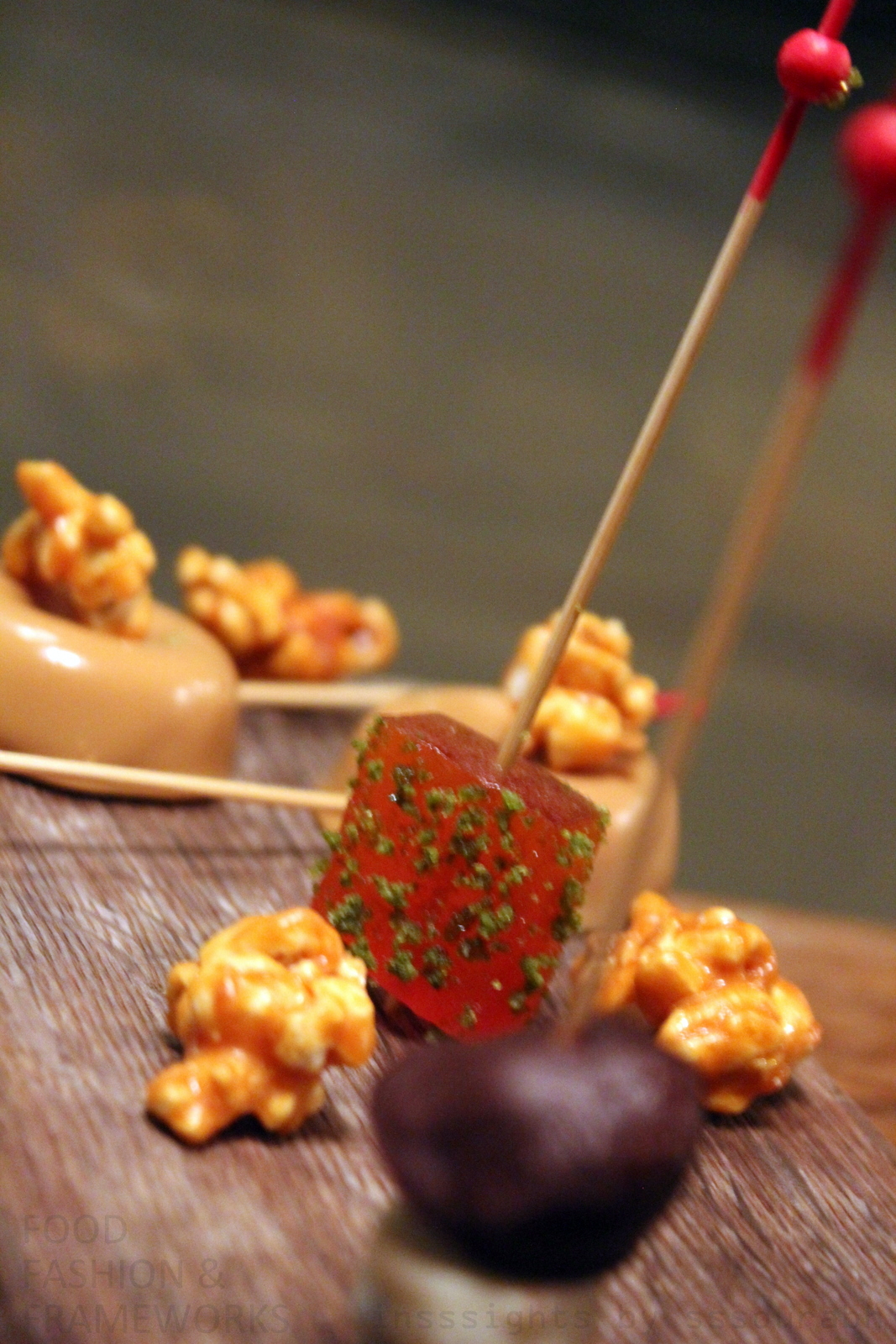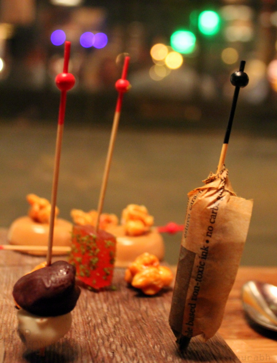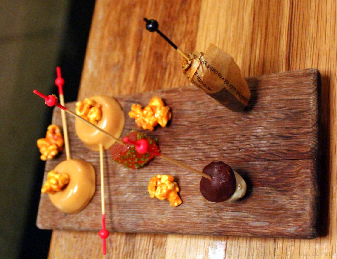 On better notes was the pirate style platter of a sprinkling of mini desserts, a bit sized concept I educated myself on in San Francisco itself. While I liked the quince jelly with herbs and spiced sugar, it was the salted caramel popcorn that had taken this mainstream fad and turned it into a crunchy, delectable snack. Same for the manchengo cheesecake, an odd combination with a least favorite dessert, but where the tartness of the cake balanced blissfully with the velvety texture of the very same cake. Plus, the whimsical presentation which mandated pics reminding me of a childhood dream of the Borrowers.