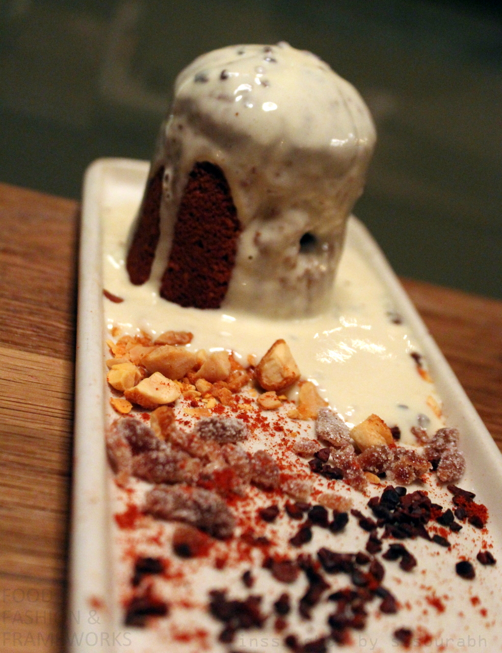 Dessert is my easy, everyday sin as many who know of my mischievous ways are aware. The warm pimenton cake was a rather suggestive cylindrical shape, held uptight with a generous sprinkling of tamarind and white chocolate cream. Getting past the coquetishness, you might say, the sprinkling of chili maracona almonds and cacao nibs made for a great textural balance to the rather vanilla cake.