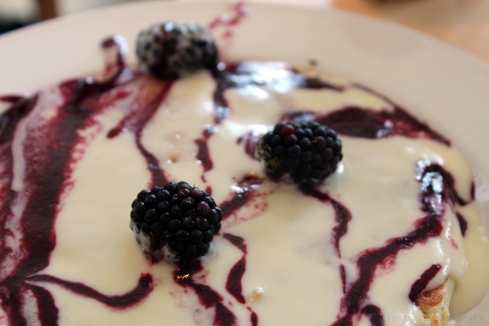 While a quiet place at the onset, it was evident that this was one of those hotspots that attracted lines, luring people in with plates smacked with hefty portions of foods in divine flavors and textures. Being my indecisive self, and a little wary of the alarming rise in bustle, I asked the hospitable host if I could get a single sampling of three dishes versus a trio of whopping pancakes or hotbreads or toasts with a monotone flavor. Having swallowed triple desserts in New York before, I didn’t see this as an issue, forgetting that it was still bird-chirping early morning with a whole day to go.
