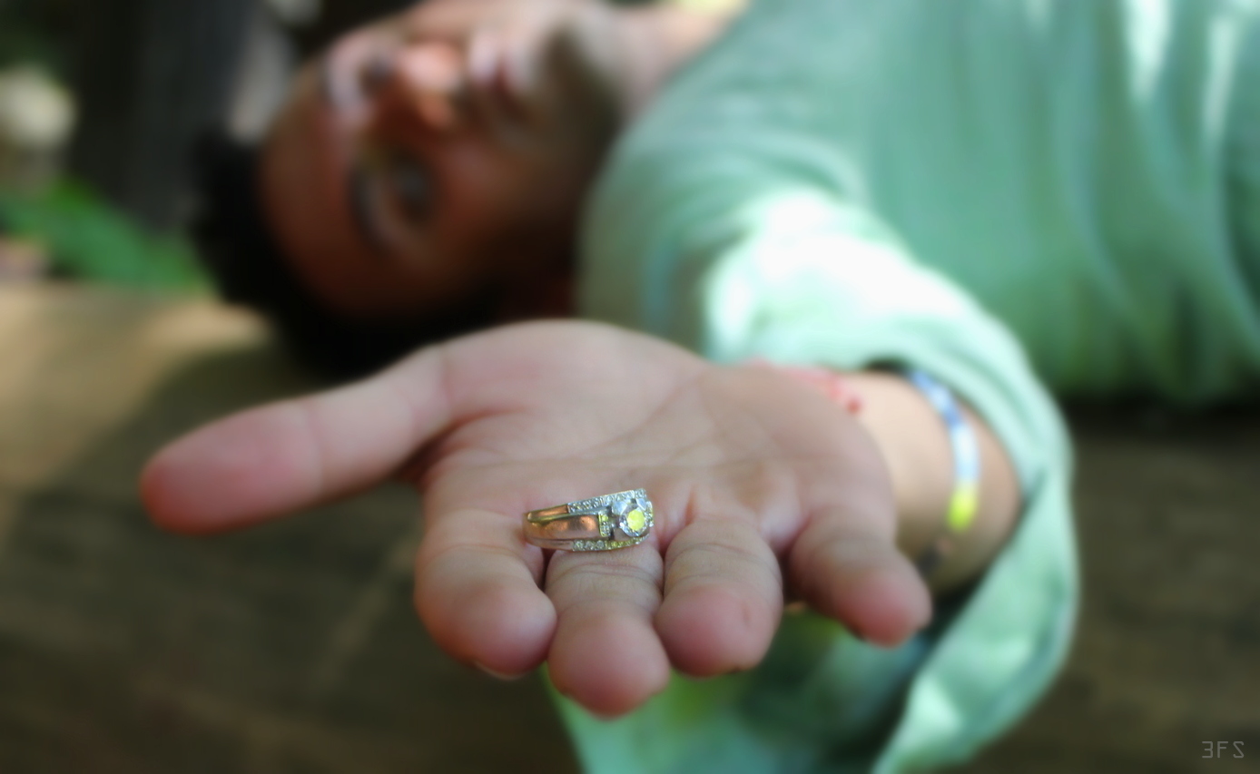 The only heritage in his fingers was an authentic grandmother’s heritage of a solitaire, encrusted in miniature diamonds in platinum. One that he hoped would have the power to fulfill a wish. Or explode into a magical abyss like Pinnochio’s fairy or a more sumptuous version as lush as the thickets.