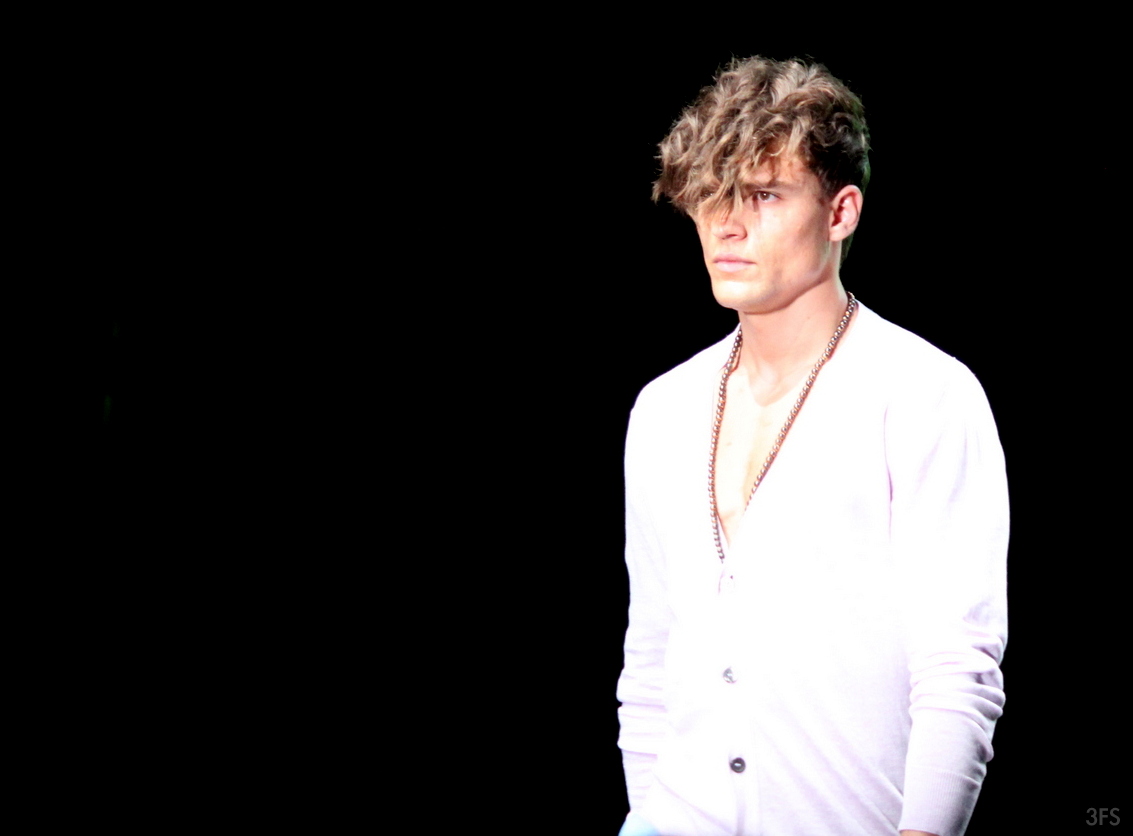 I saw touches of frays in his clean lines, storms of cloudy blues juxtaposed with pastel hues, beach references with tanned bodies and sprayed wool and fabrics. The models were walking poetry, with the firmness of collars clashing with the sway of rosaries and feather tipped necklaces, or the oxymoron of having a Brazilian beach vibe with Italian and Japanese fabrics for straighter, un-angled lines. Hence, destructive luxury, for it was refined with a rebel’s soul.