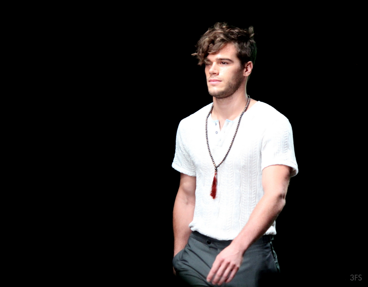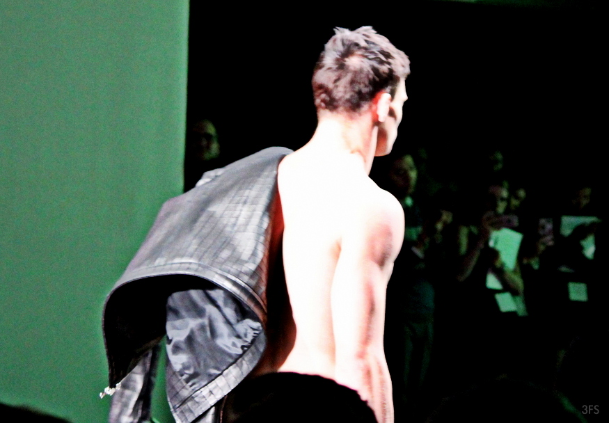 However my favorite pieces were the outerwear jackets: leather, crocodile, often interlaced with suede, in heavy black accents on white, black and black on black hues. Bikers, bombers, all ignited the rebel within the guys in the audience, without overdoing it in a cliche tattoo format. Creativity at its best. Especially since these, along with simpler silk cardigans, were terrific layering pieces for when summer nights got chilly and begged for getting cozy.