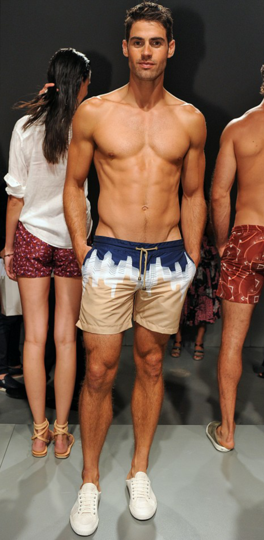 Of all the trends I saw, the one that jumped at me immediately was the sheer quantity of animal print used, particularly leopard. Now anybody who knows me knows my infatuation with all things leopard, so needless to say I was yelping in my seat with the knowledge that my favorite menswear trend was not languishing anytime soon. (And probably gave off the impression that I was not being coy enough staring at six packs from behind my sunglasses). For I do think that the spotty cheetahs and leopards add a whimsical, wild and confident character in a man. Especially when on his swimwear, tanks and underwear.