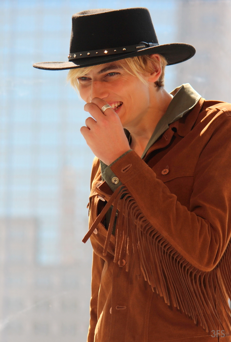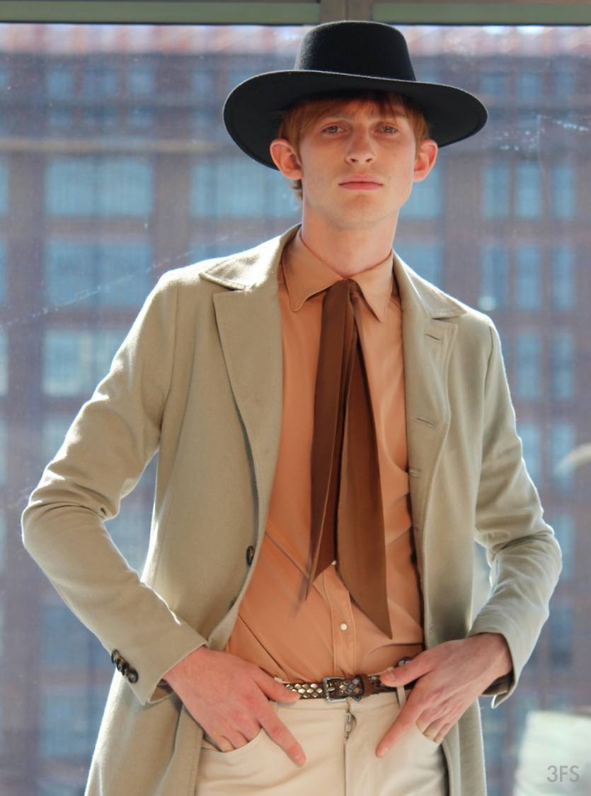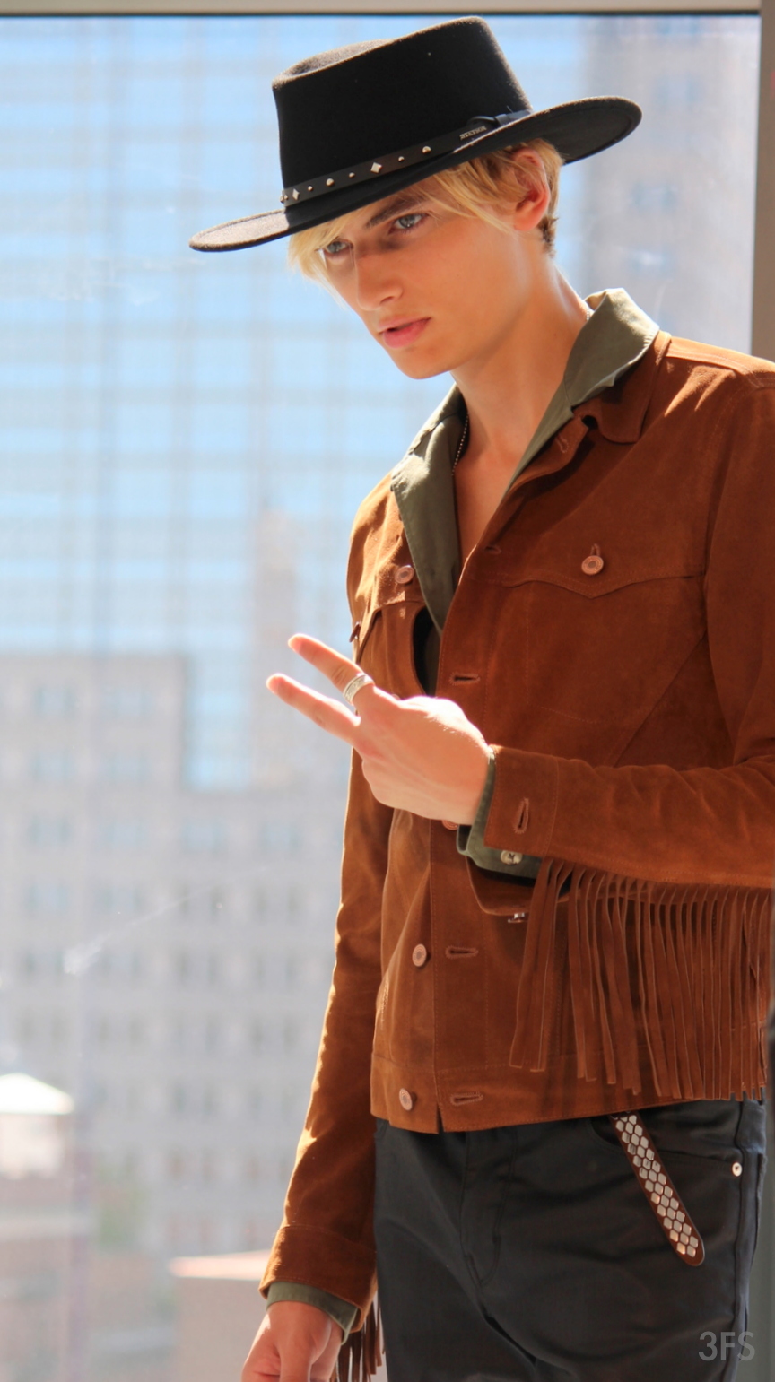 And speaking of accessorizing, nothing is complete to a cowboy look without a hat. While the hats themselves were simple, with a stud here or a metal insert there, their freshness amongst other trends at NYFWM made them pop. While I preferred them with studs, the lack thereof revealed some steal-worthy hairstyles from dapper models.